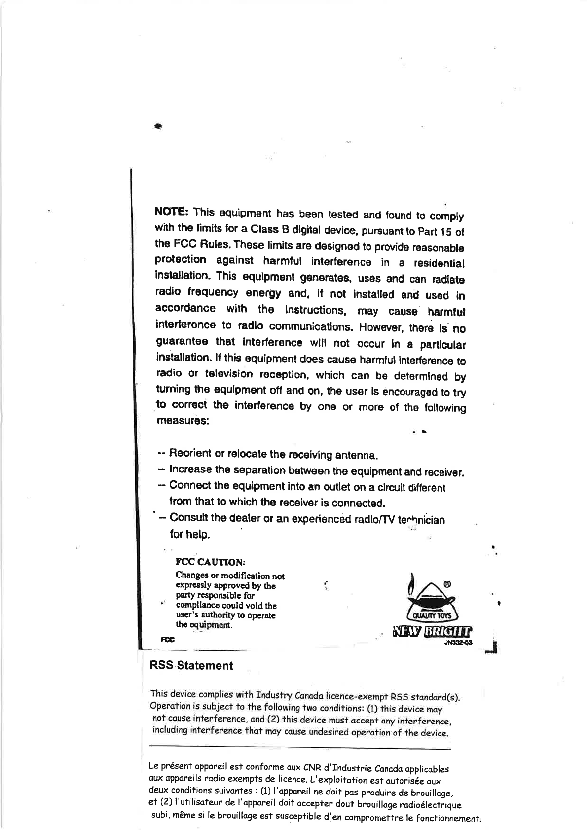 New Bright Co GF7LMB TOY Receiver User Manual