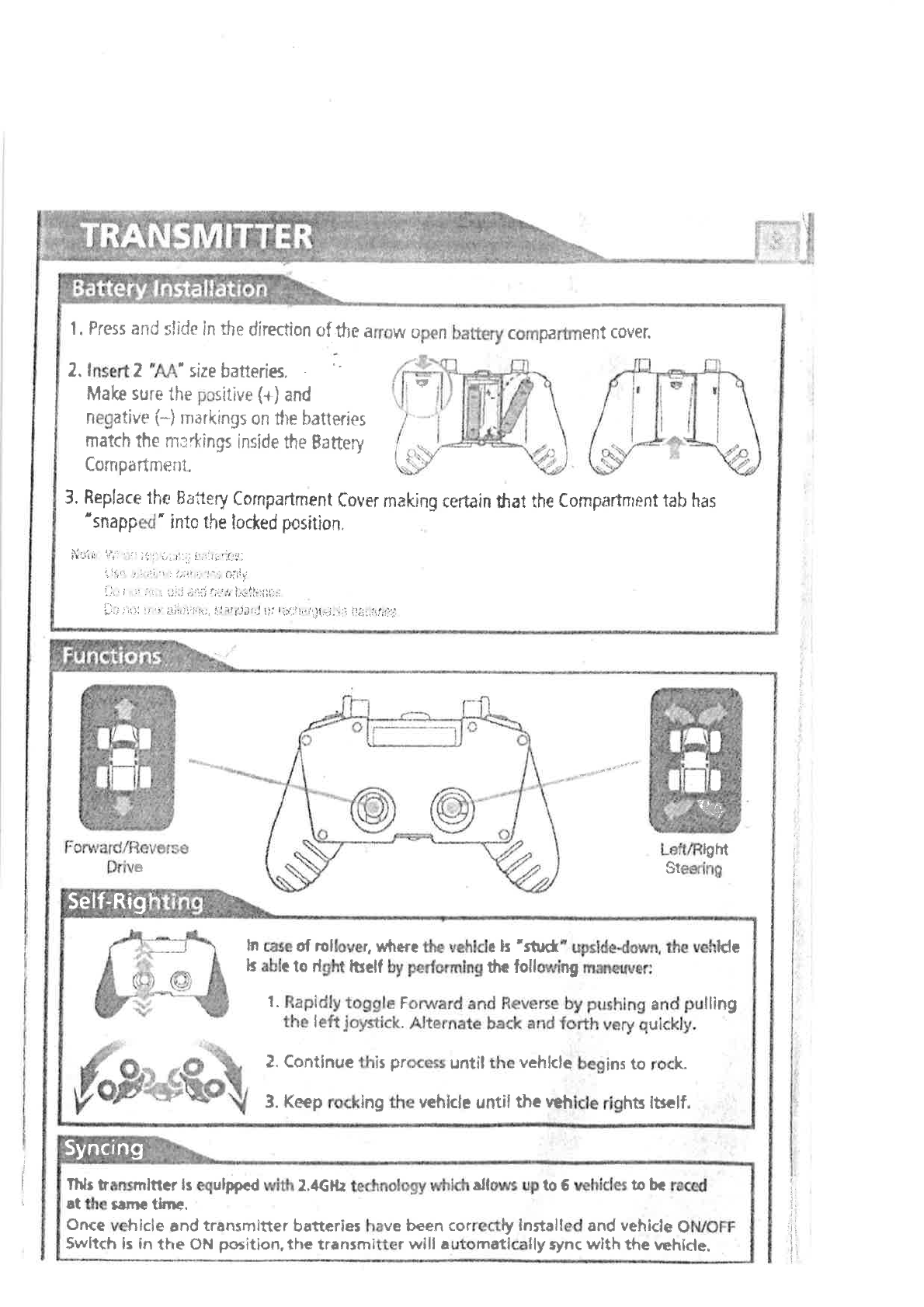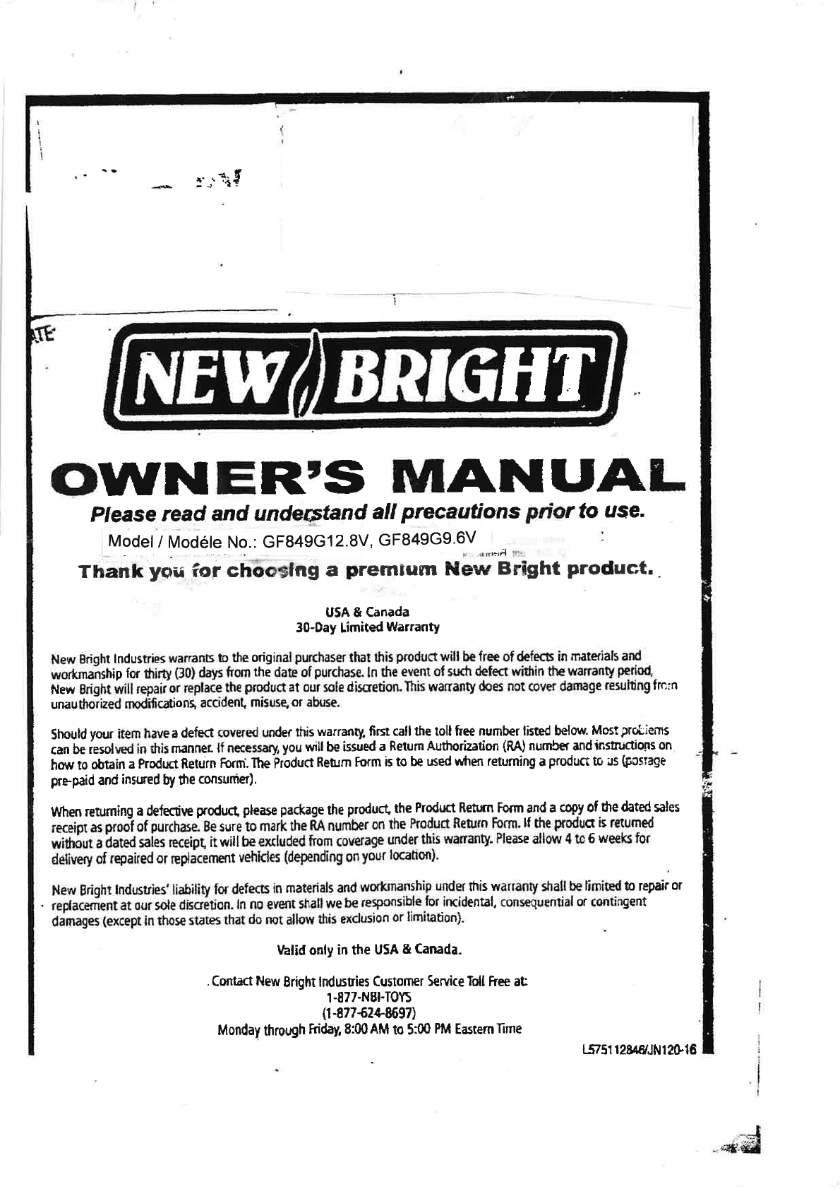 New Bright Co GF849G Toy Receiver User Manual REV 1