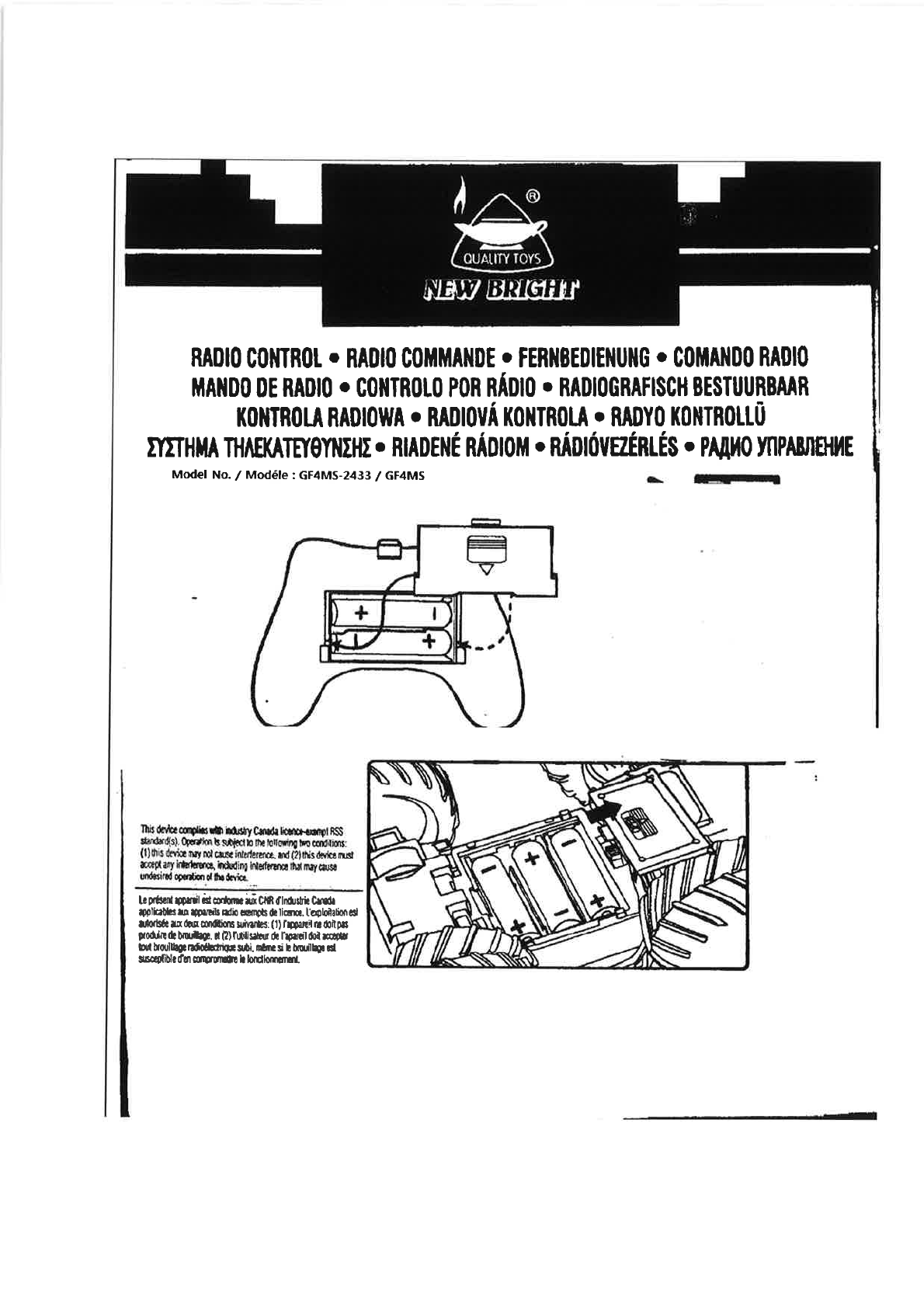 New Bright Co GFH2 TOY Transmitter & Receiver User Manual Manual