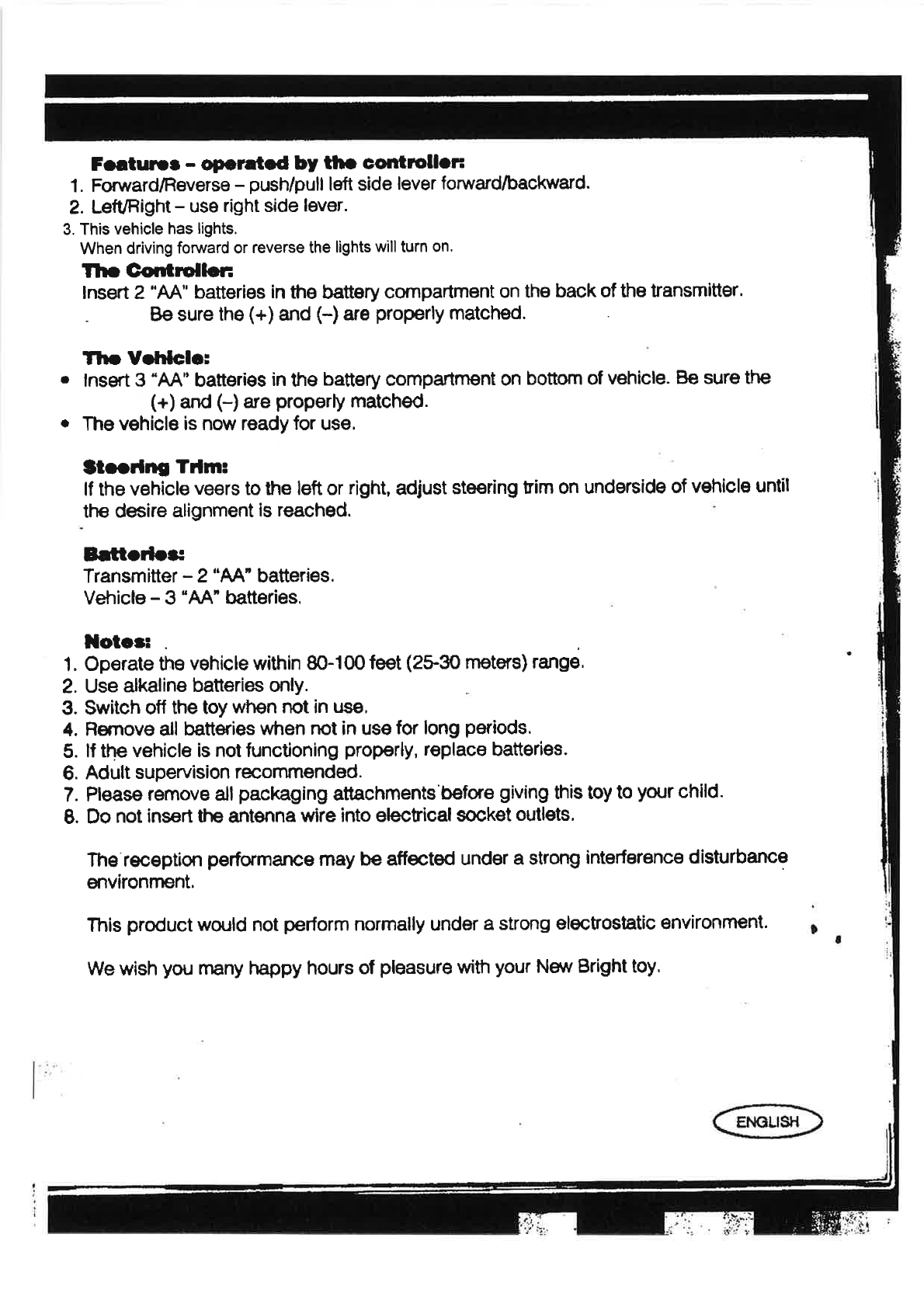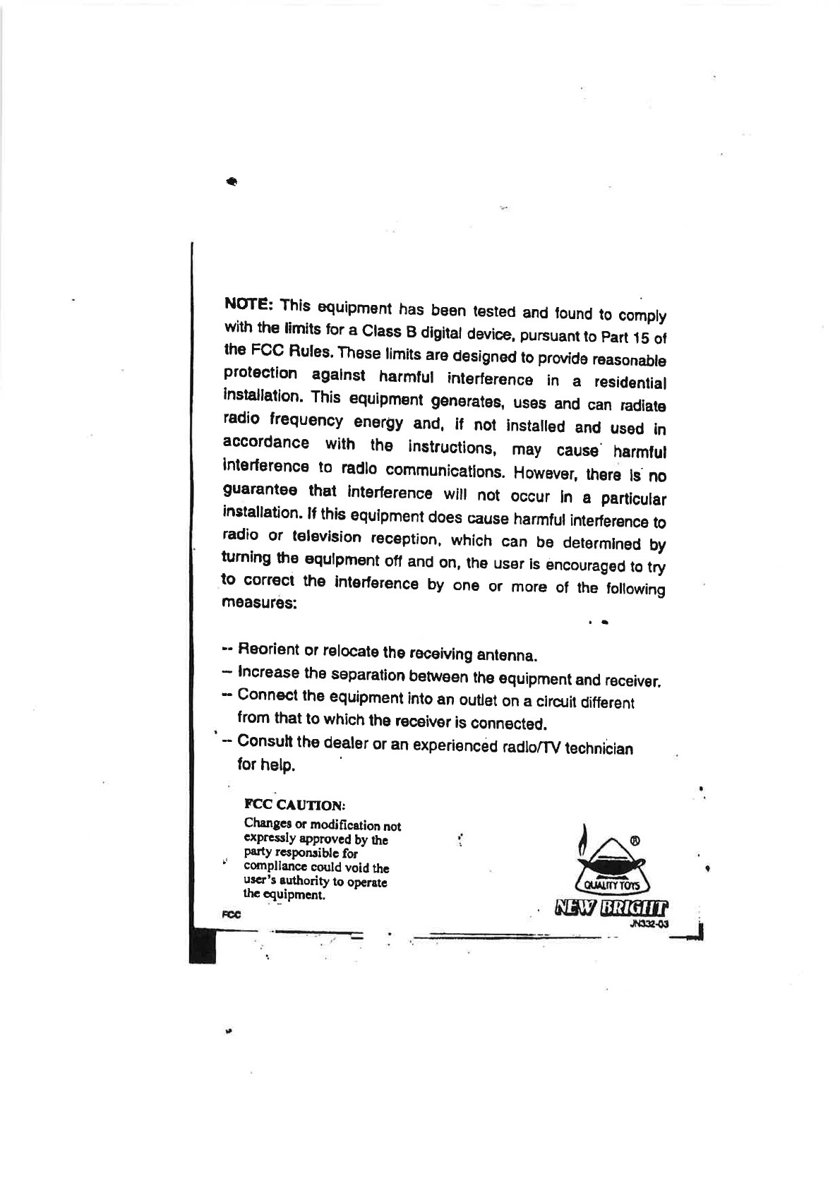 New Bright Industrial Co Ltd TOY Transmitter & Receiver Manual