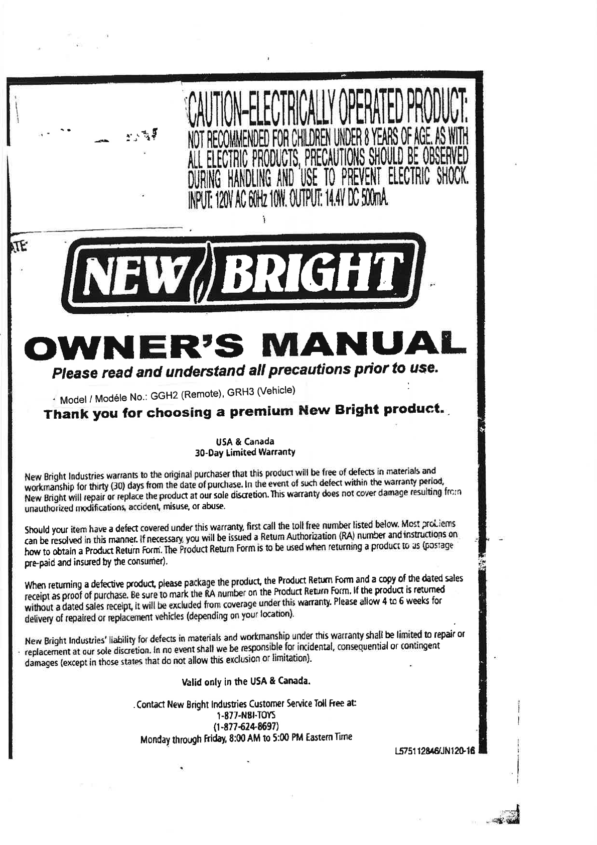 New Bright Co GGH2 Toy Transmitter & Receiver User Manual