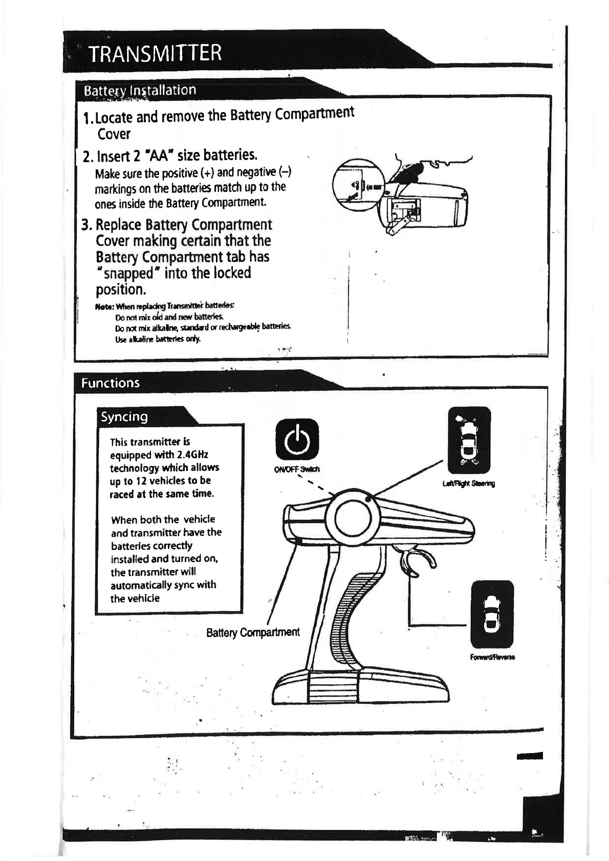 New Bright Co GRH3 Toy Transmitter & Receiver User Manual