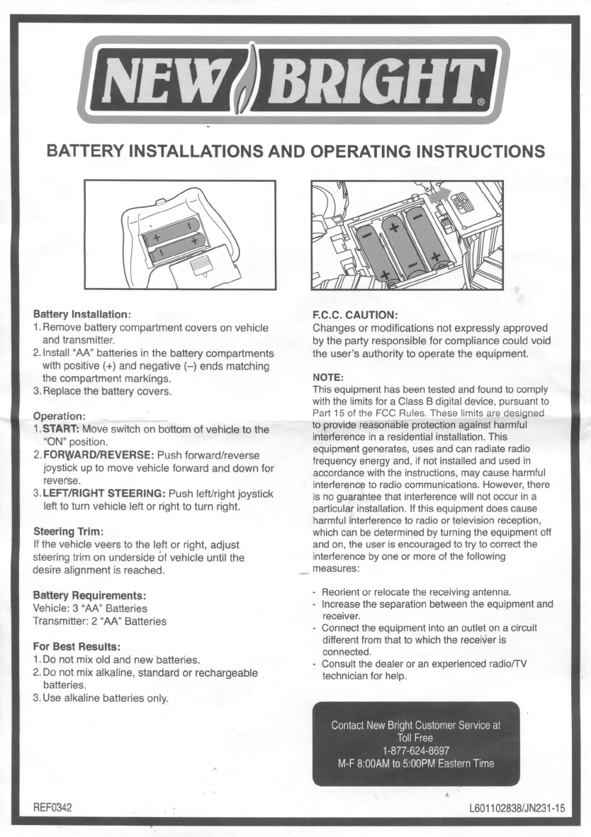 New Bright Co RF4MBP TOY Receiver User Manual