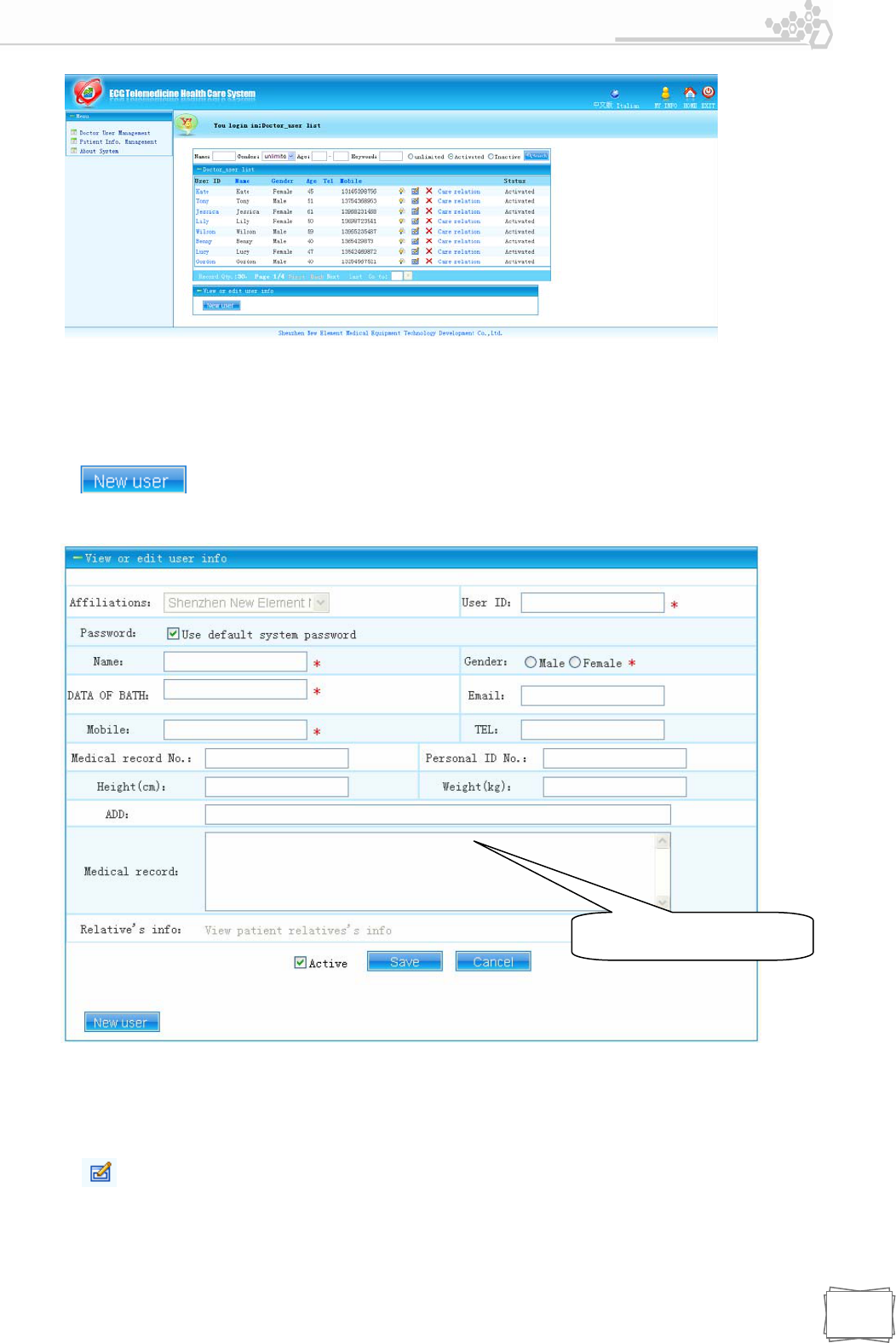 Shenzhen New Element Medical Equipment Technology Development Co., Ltd. REMOTE & MOBILE ECG MONITORING SYSTEM Users Manual
