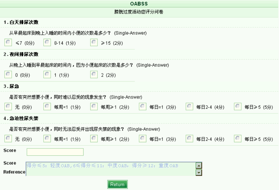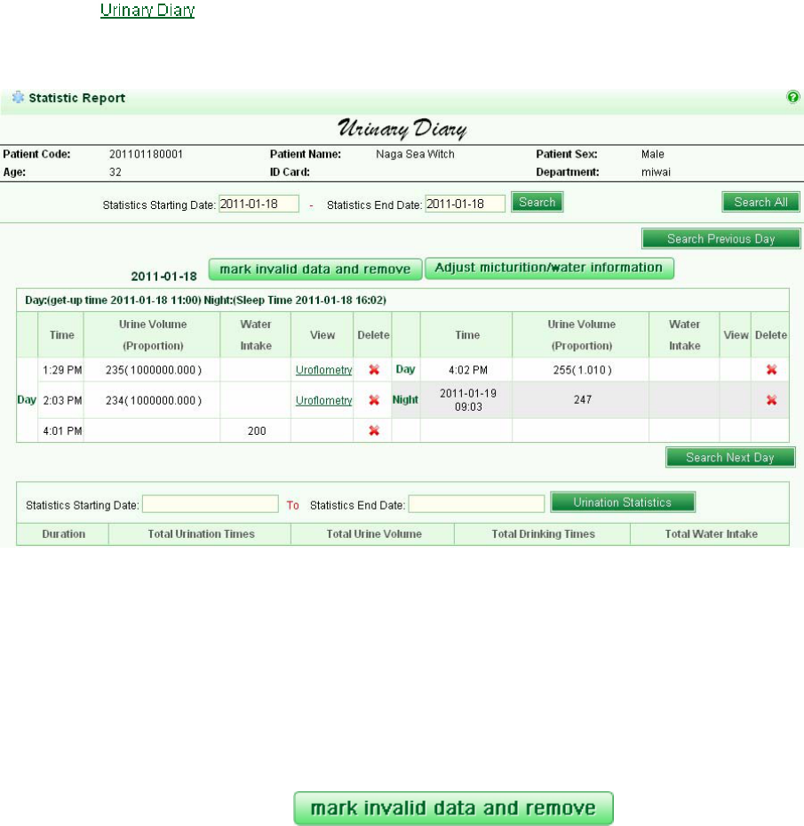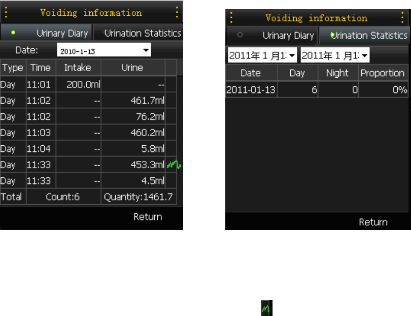 ¾ Urinary diary statistical table: The statistics items include urination times, urine volume,