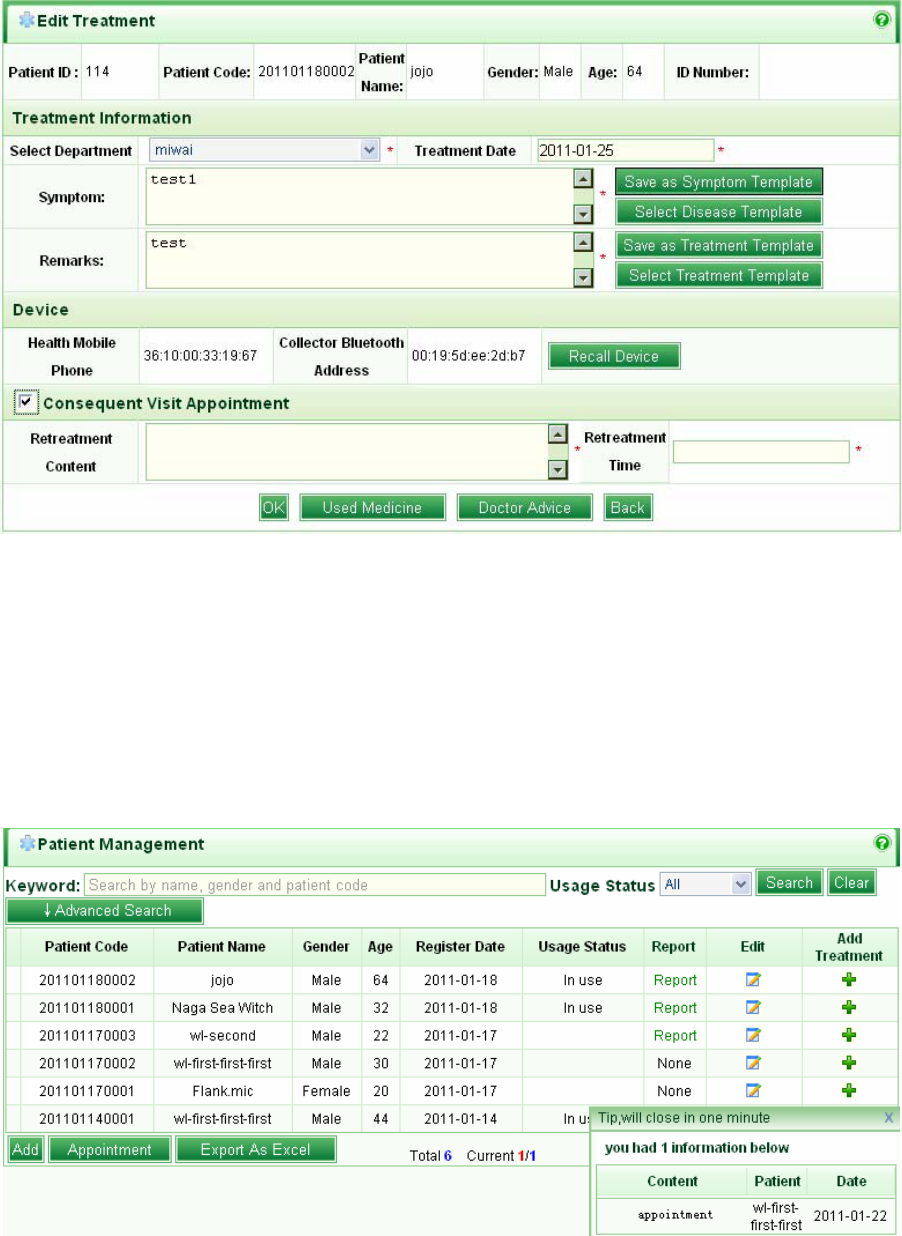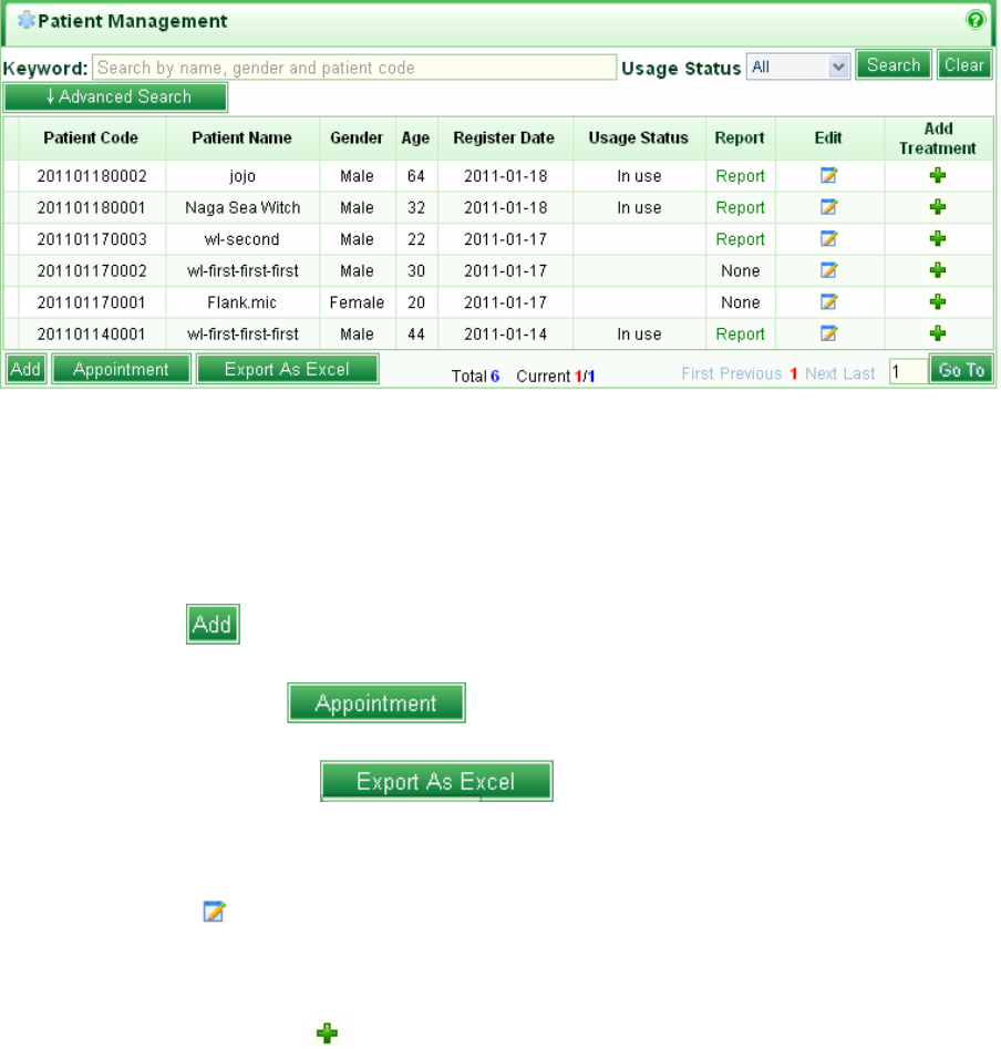 ¾ Patient information: Including patient No., name, gender, age, ID card No., and register