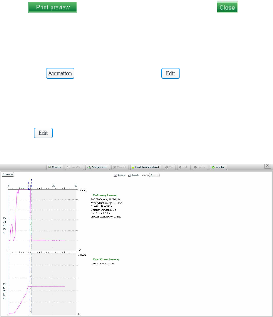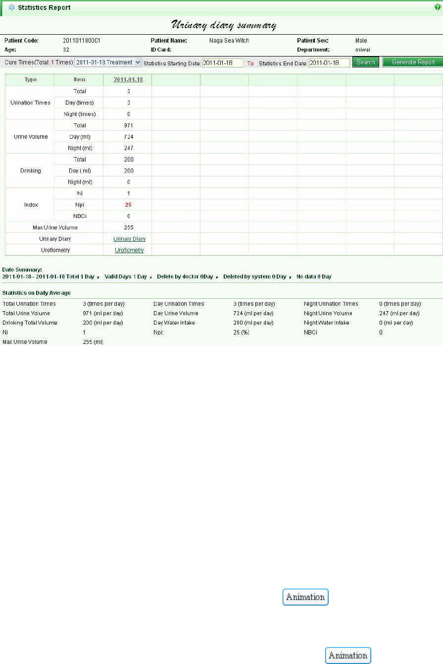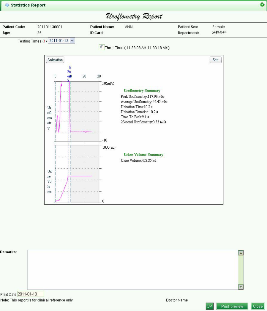 f) Uroflometry: Access the uroflometry report interface to view the information &