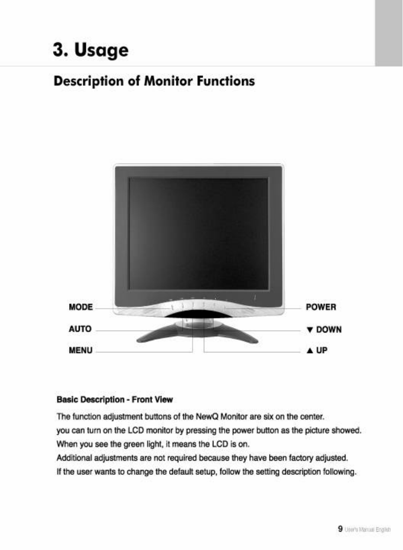 NewQ System NQ-181ET LCD Monitor User Manual LCD MONITER MEUN