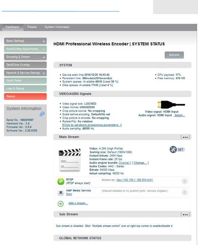 If the encoder involves firewall / NAT traversal issues, please refer to 7.8 firewall