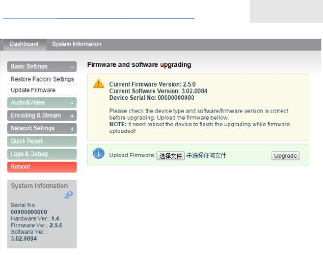 1. The speed of firmware upgrades file upload is slow, please be patient.
