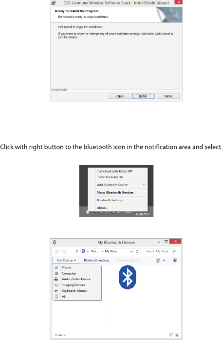 In setting the Bluetooth (the item in the menu after clicking with right button to the