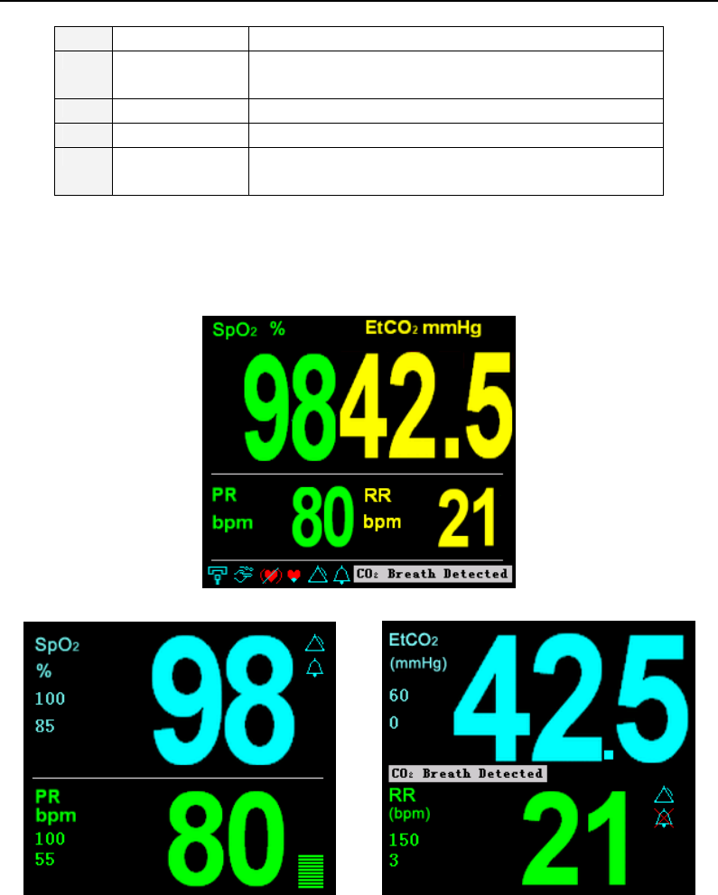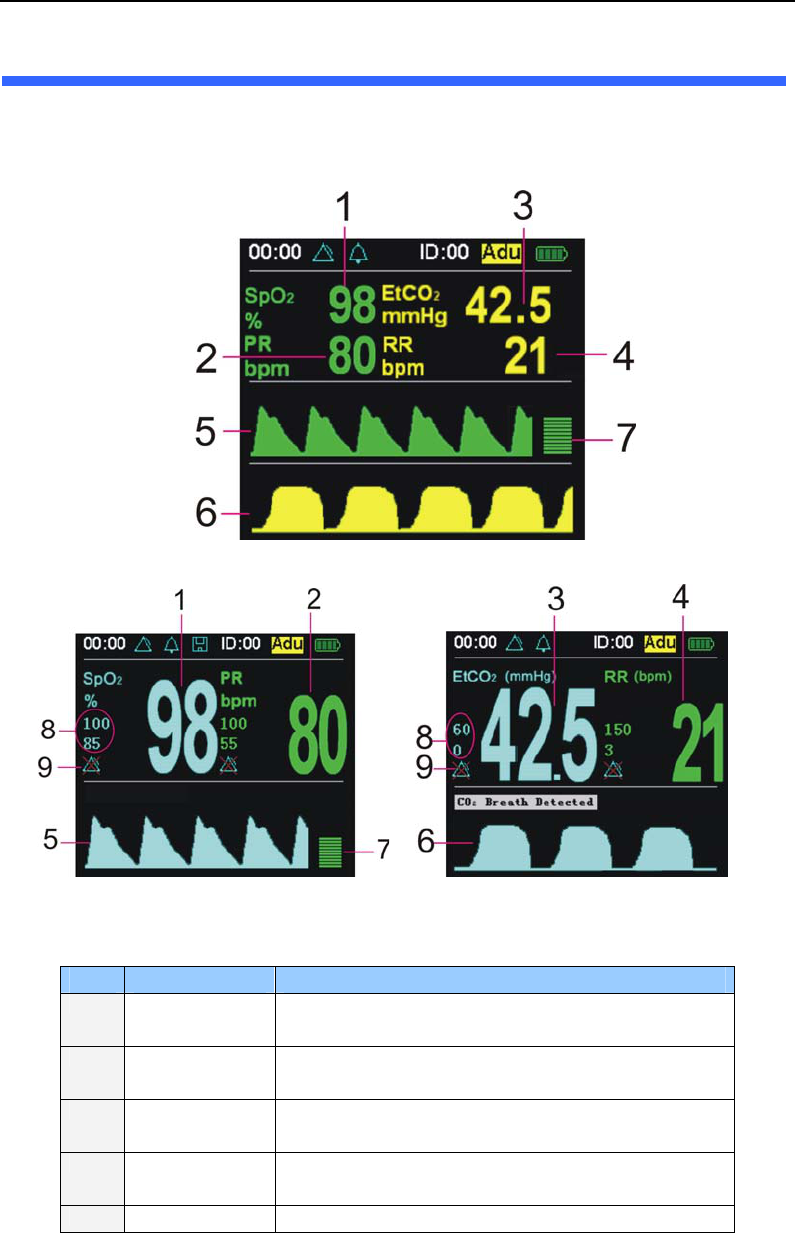 Measures and displays EtCO2 in one graphic and one digital displays.