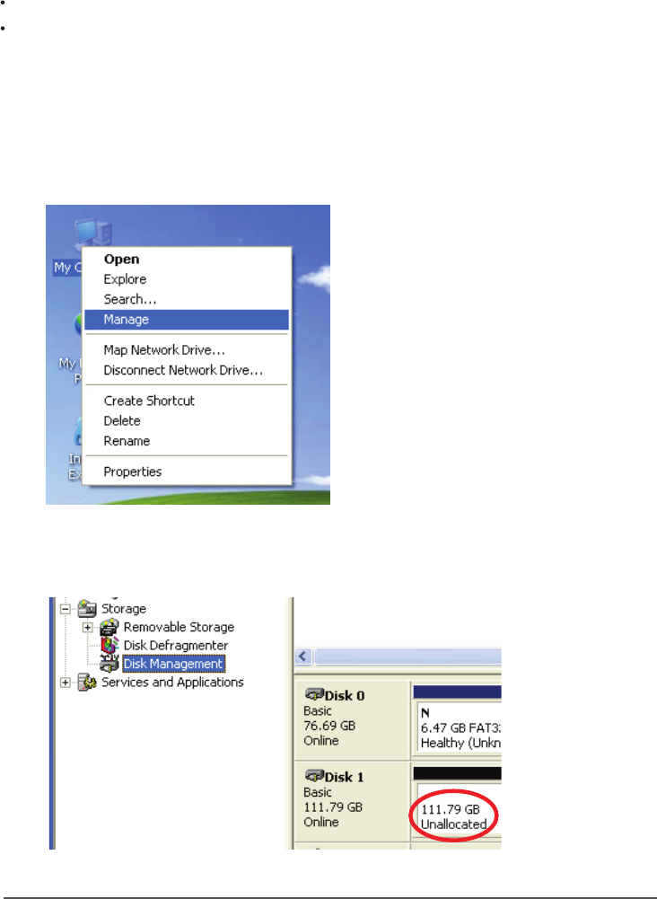 STEP2: Select “Disk Management” and you will see your Hard Drive shown as “Unallocated”