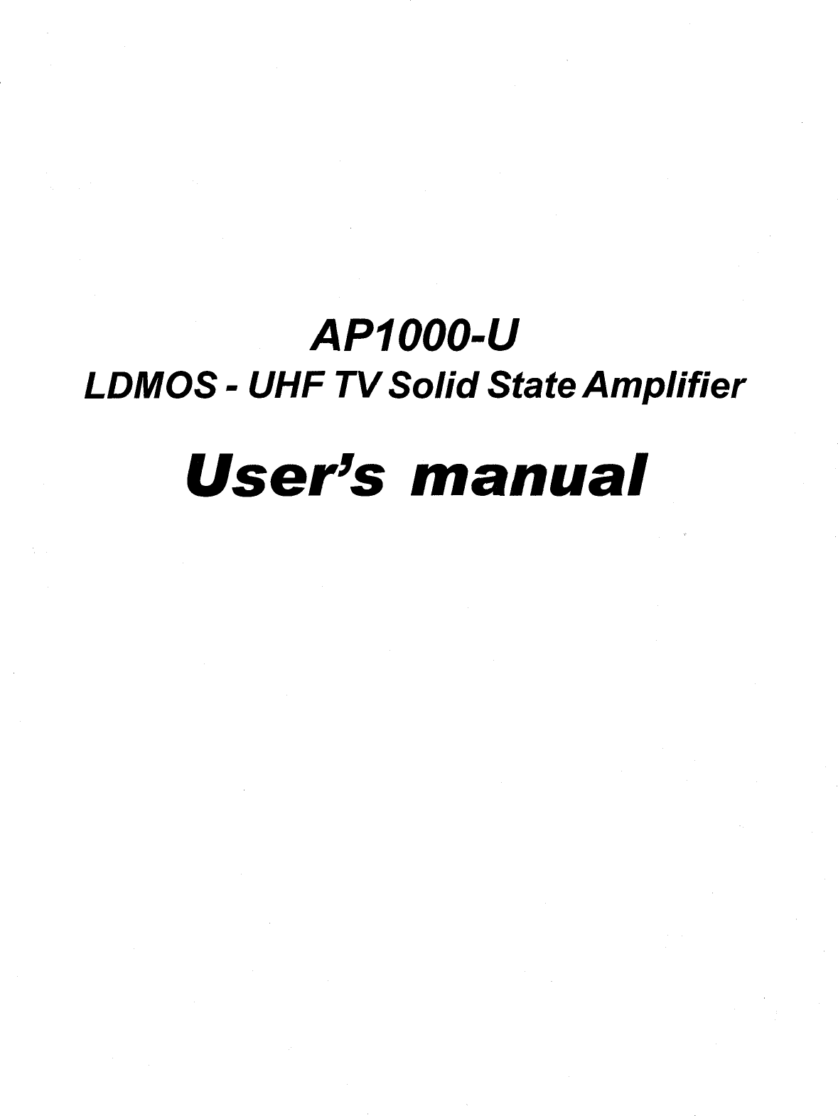 NiCOM USA AP1000FP06 UHF TV AMPLIFIER User Manual USERS MANUAL 1