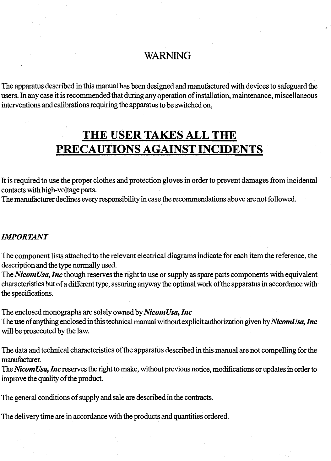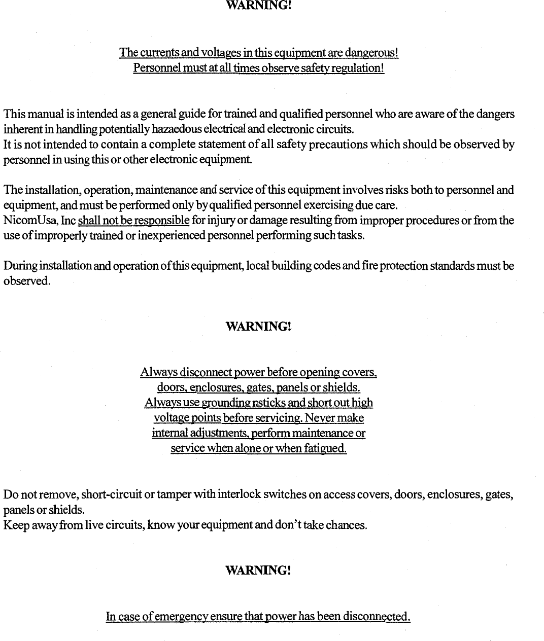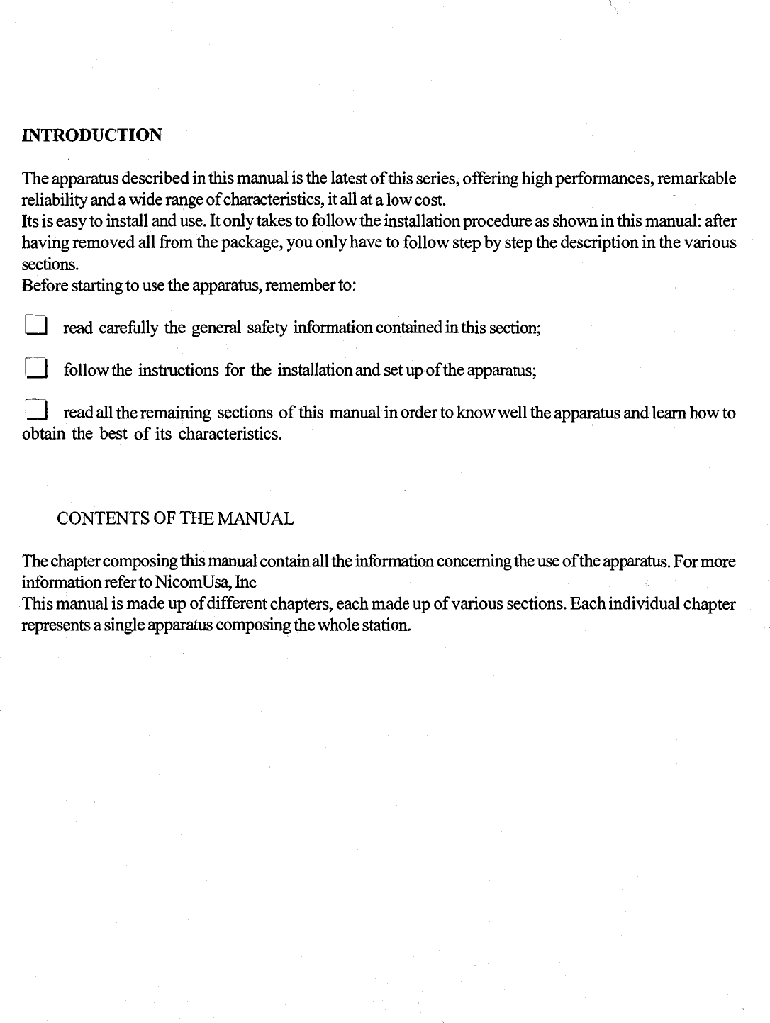 NiCOM USA UHF TV AMPLIFIER USERS MANUAL 1