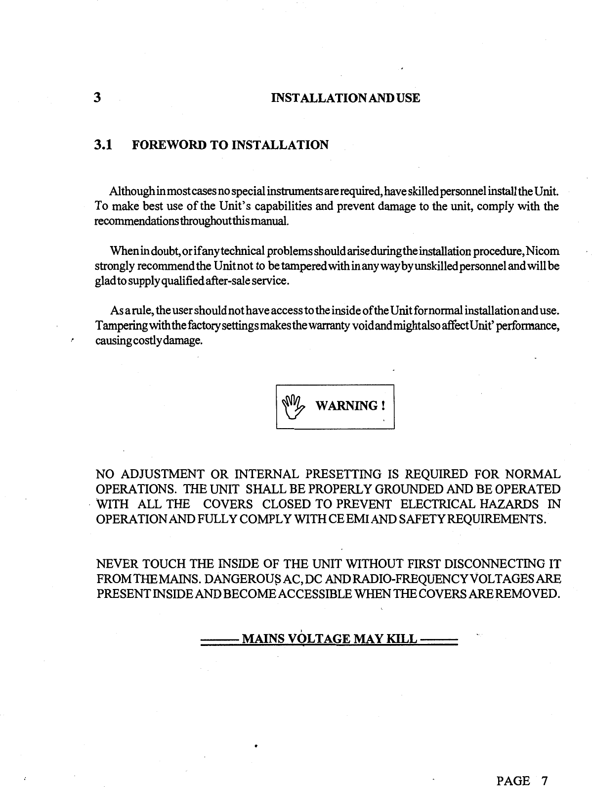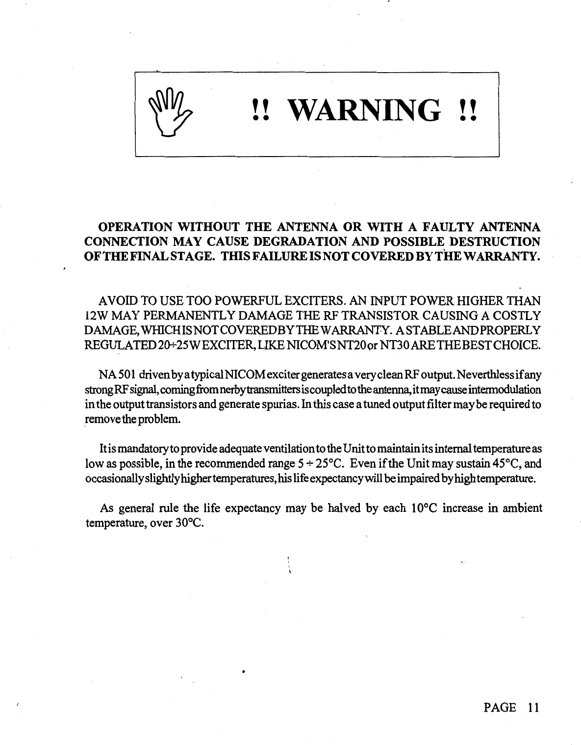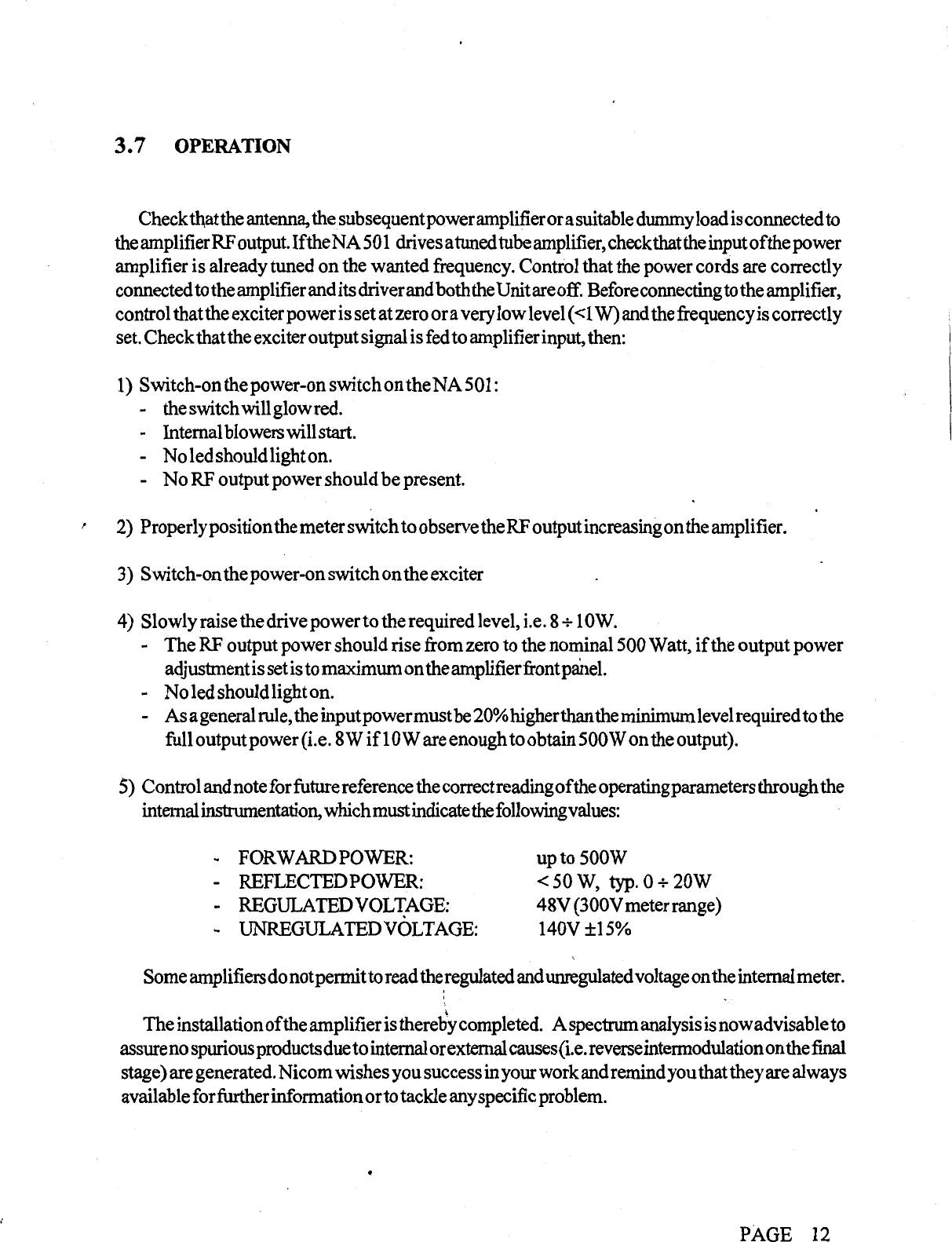NiCOM USA BROADCAST AMPLIFIER users manual