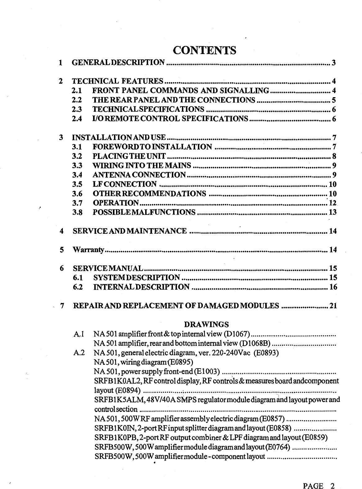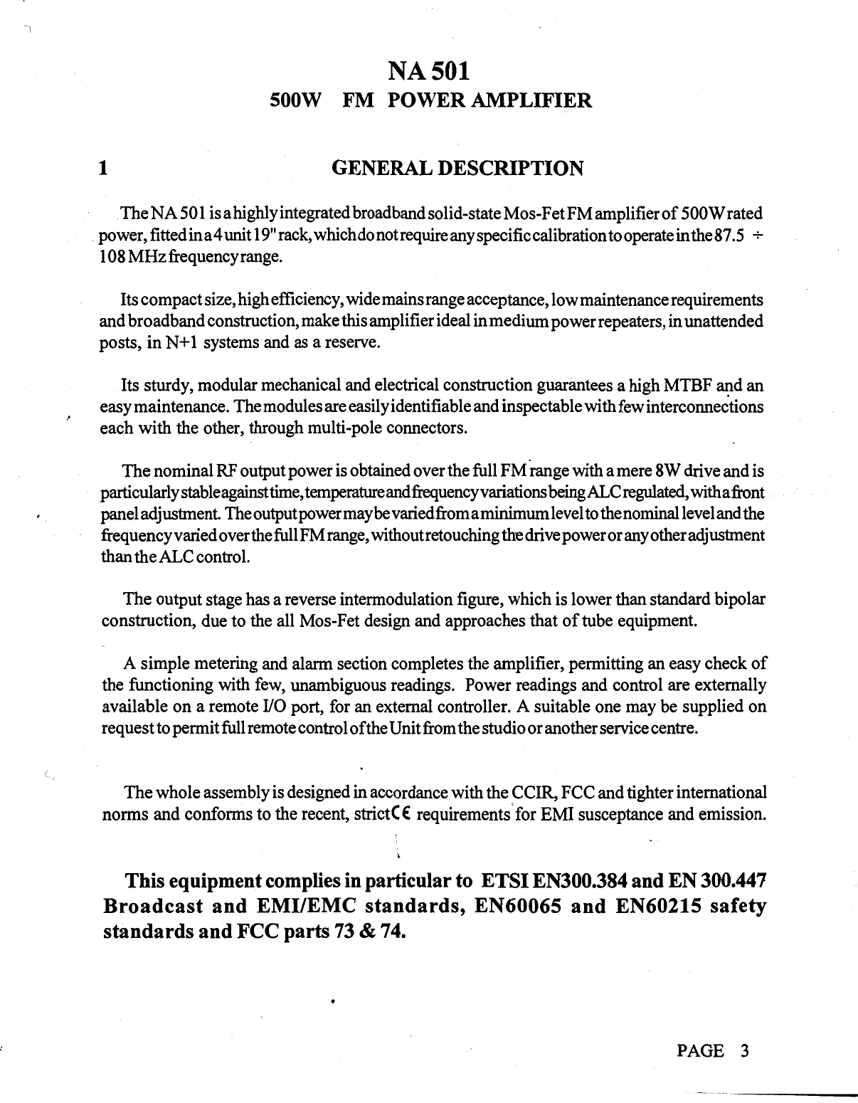 NiCOM USA NA501FP05 BROADCAST AMPLIFIER User Manual users manual