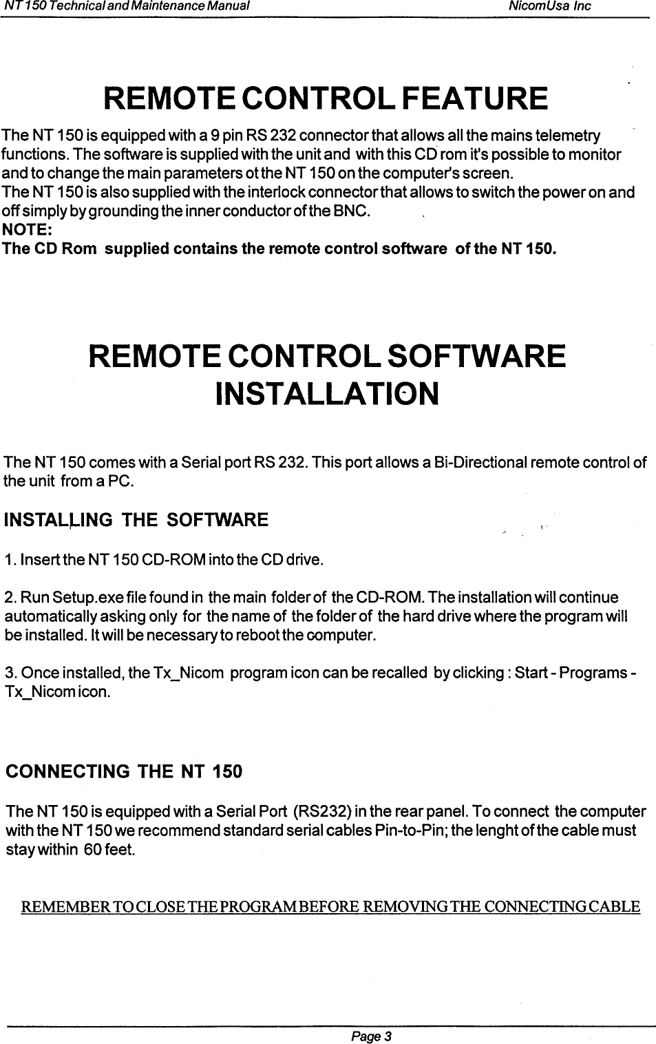NiCOM USA NT 150 W FM EXCITER USERS MANUAL