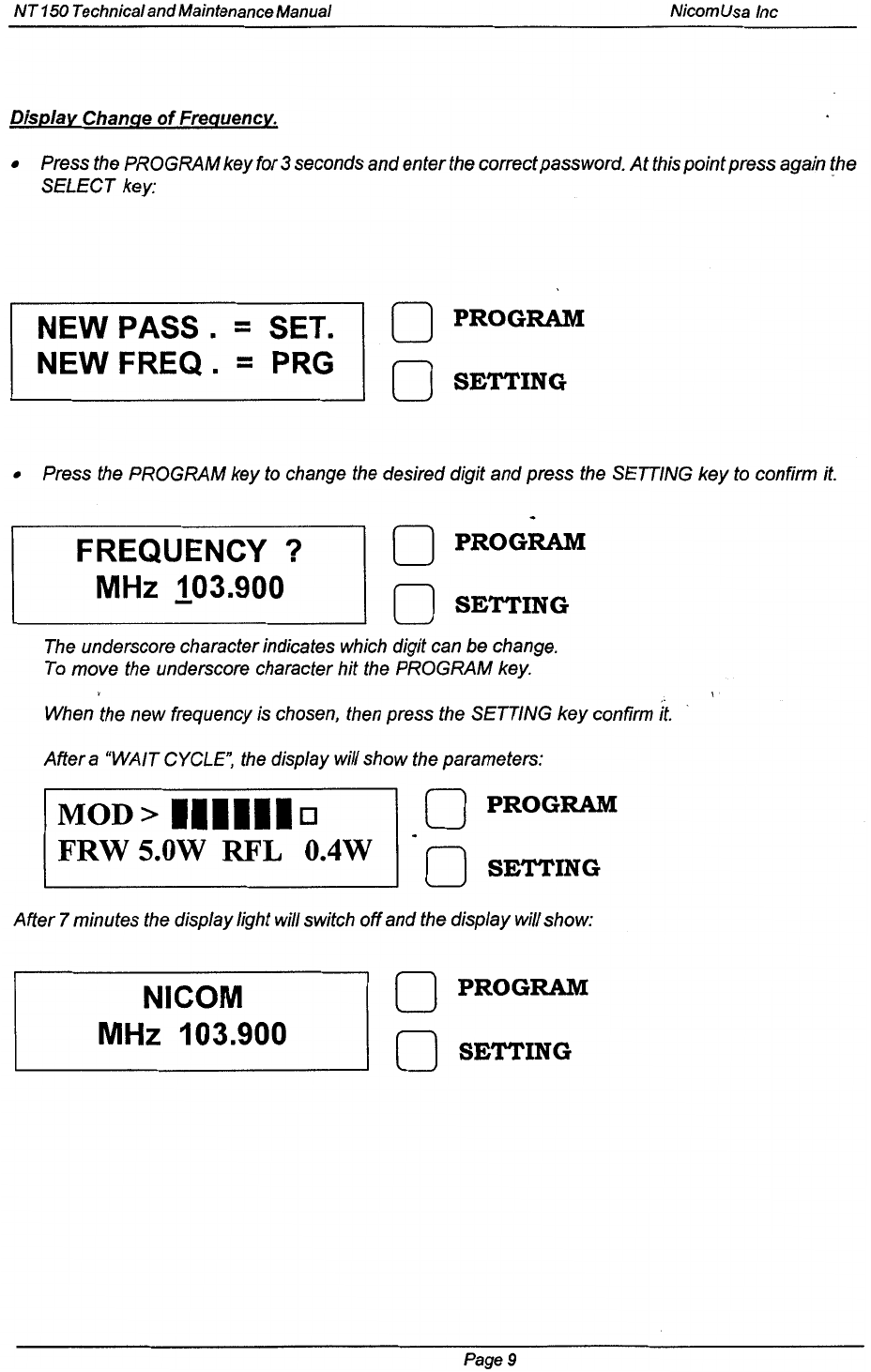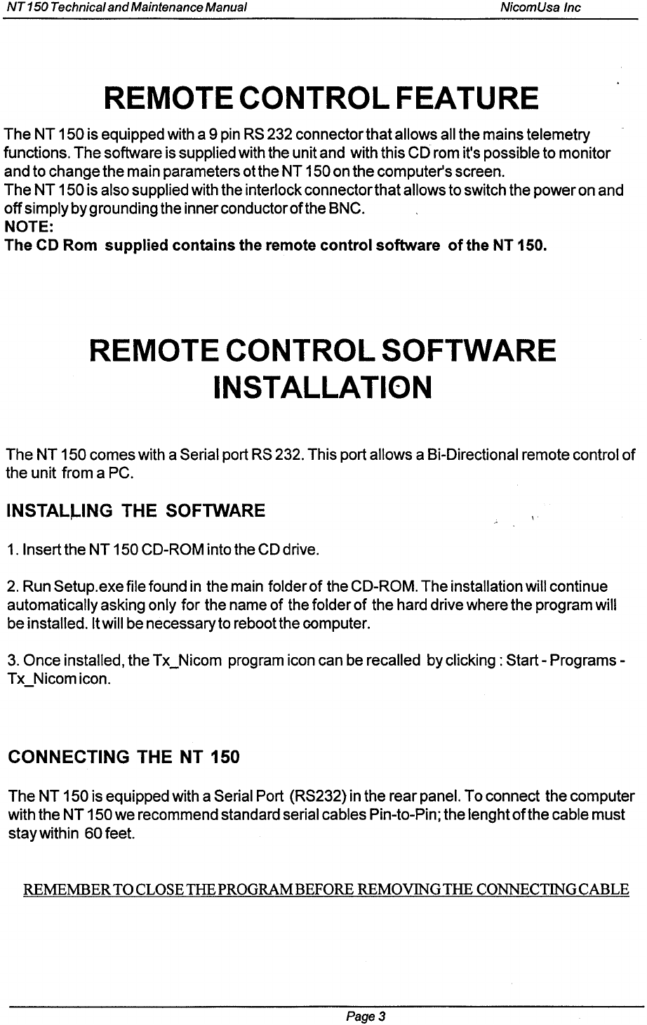 NiCOM USA NT 150 W FM EXCITER USERS MANUAL