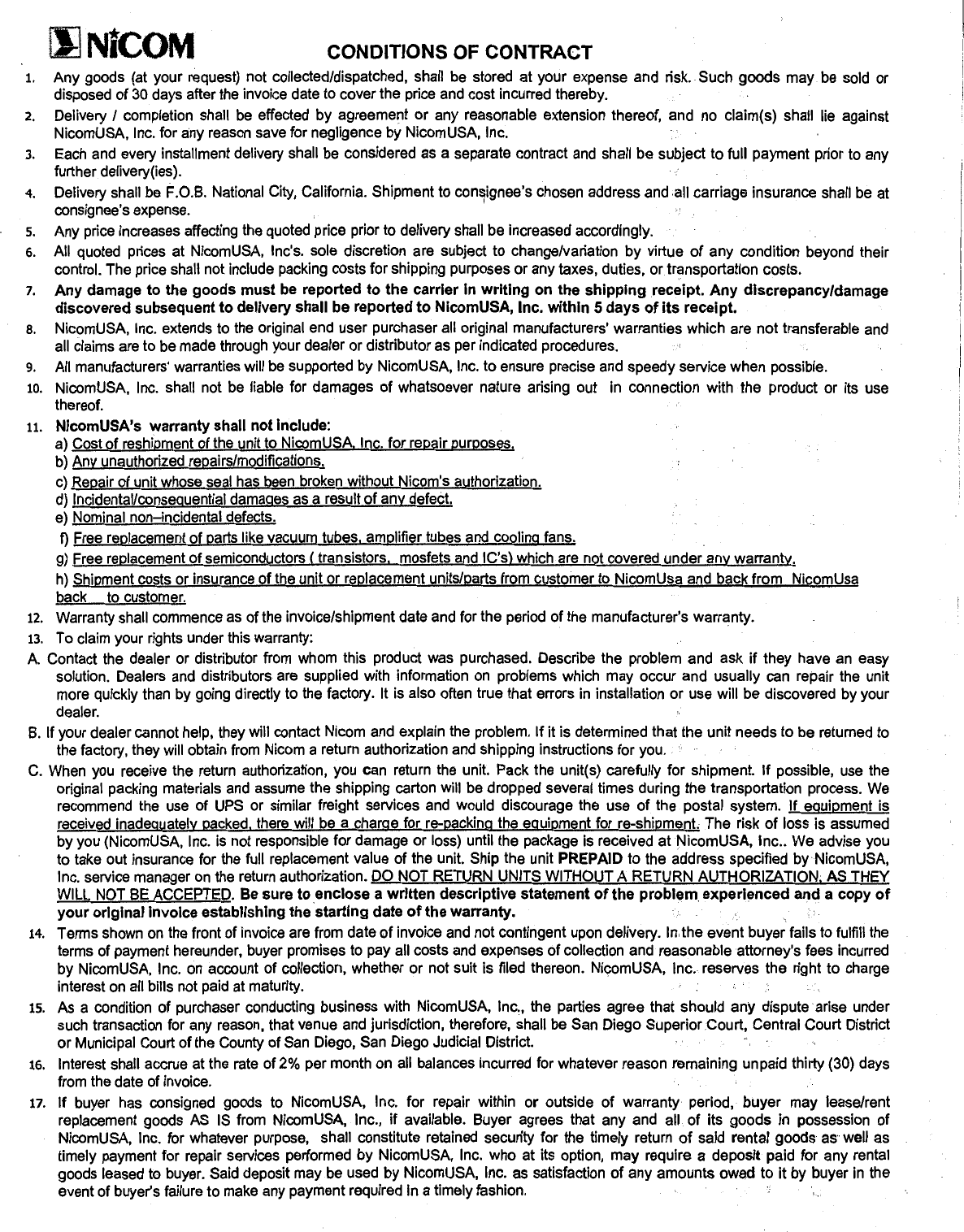 NiCOM USA TV TRANSMITTER USERS MANUAL 1