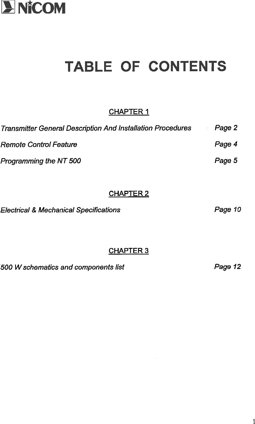 NiCOM USA NT500FP09 FM TRANSMITTER User Manual USERS MANUAL