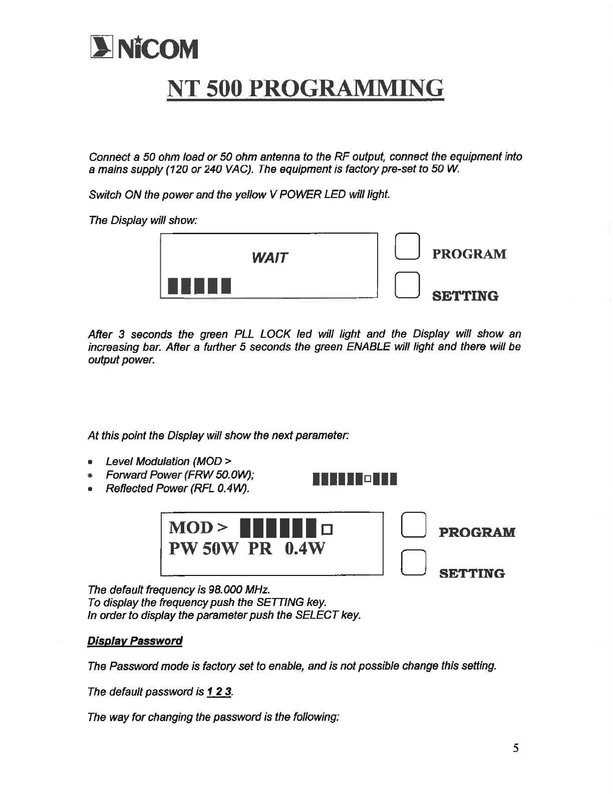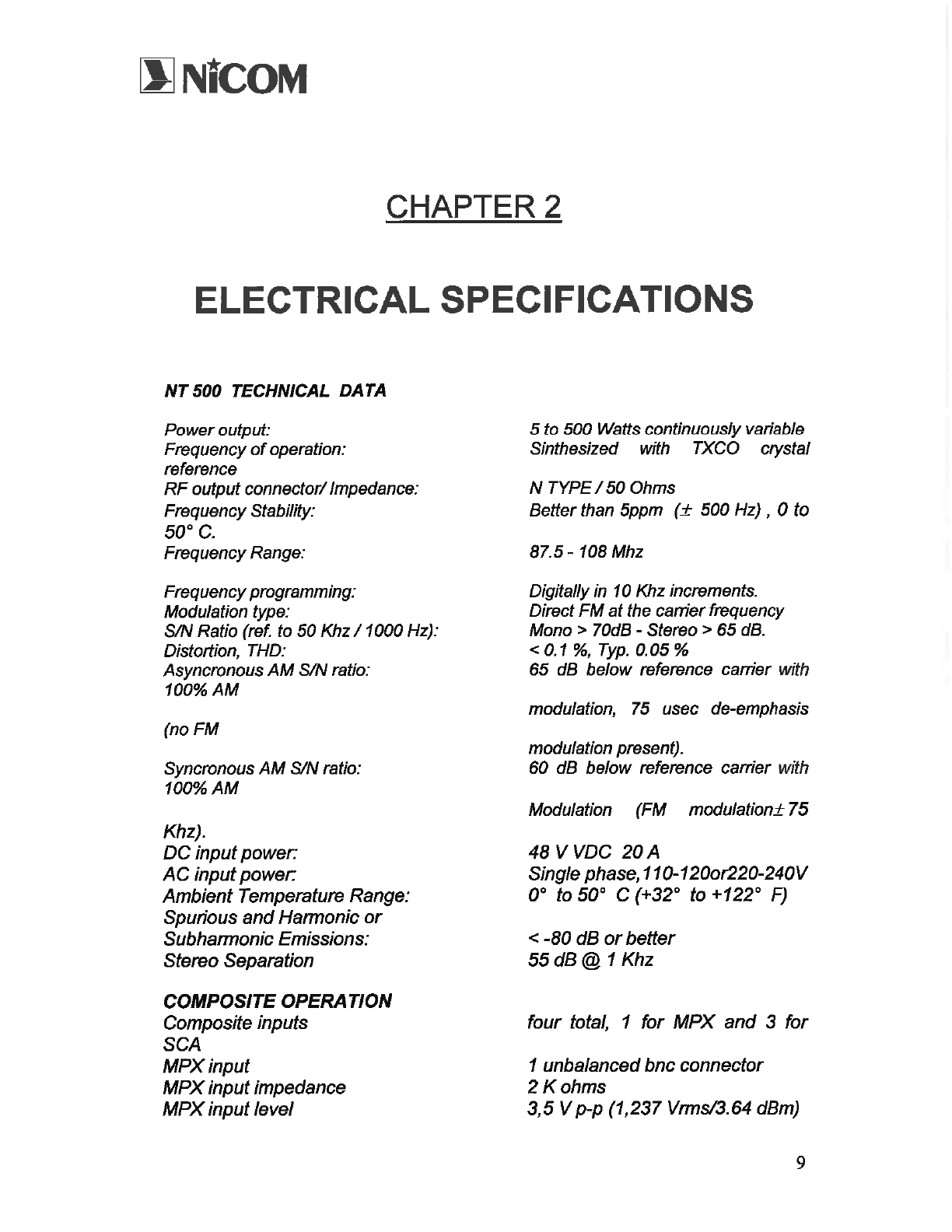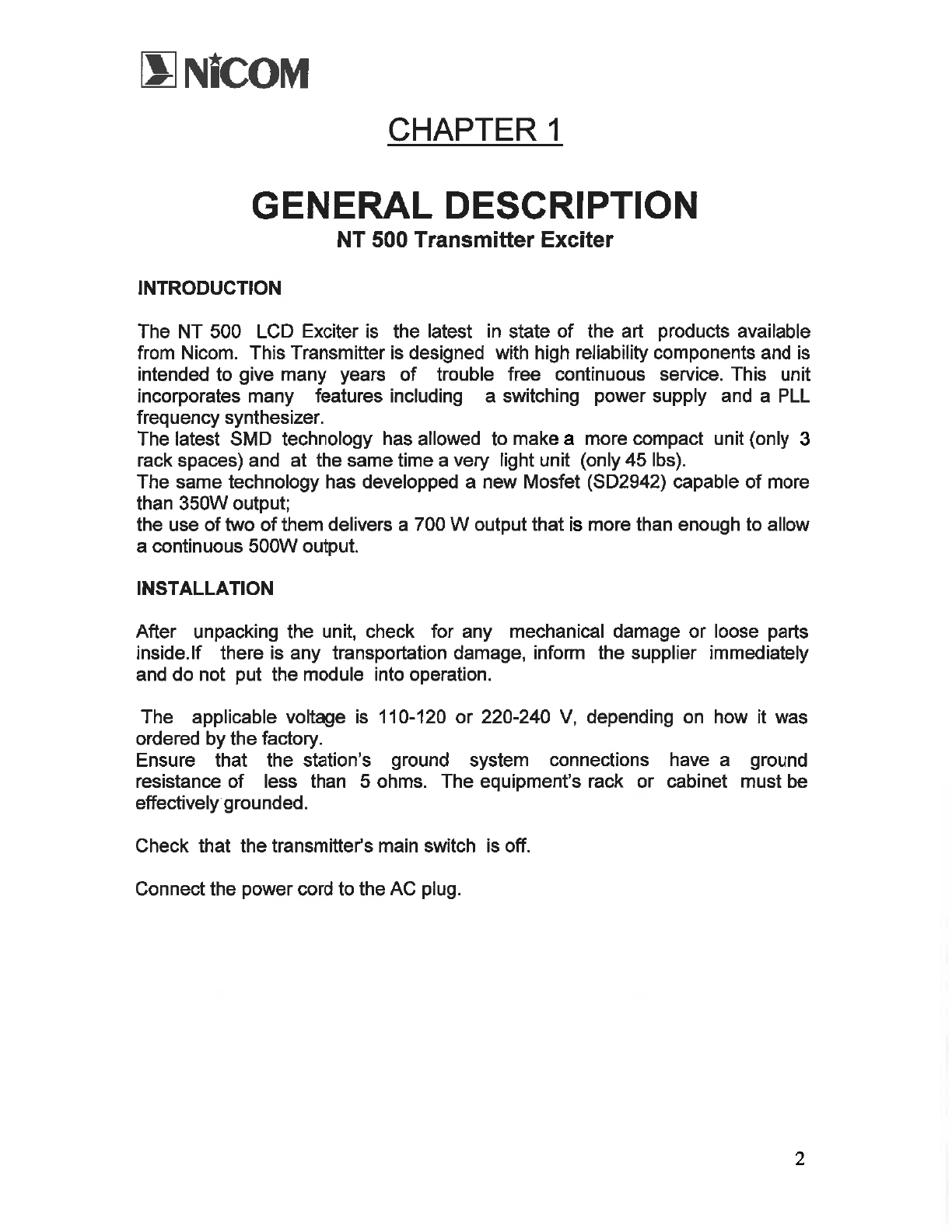 NiCOM USA NT500FP09 FM TRANSMITTER User Manual USERS MANUAL