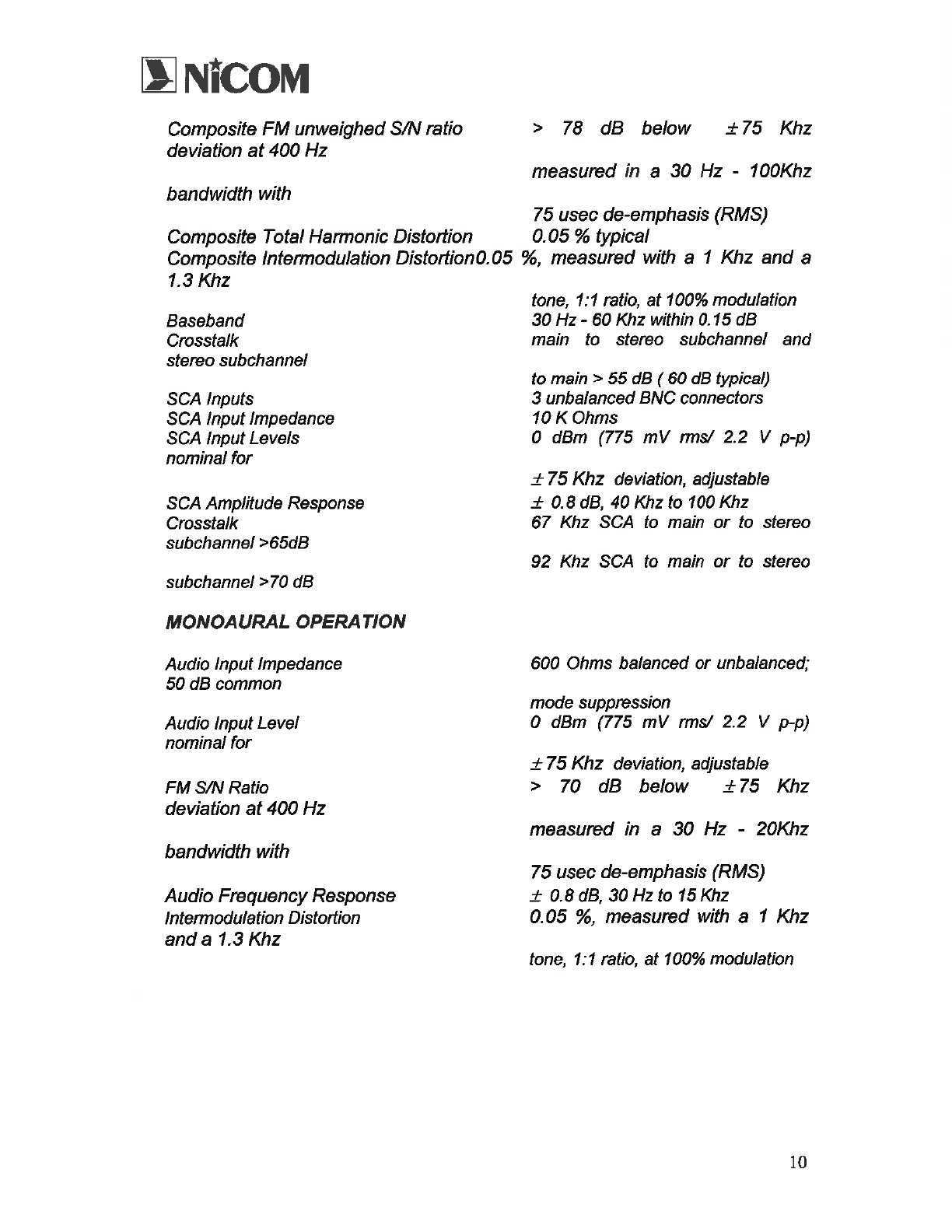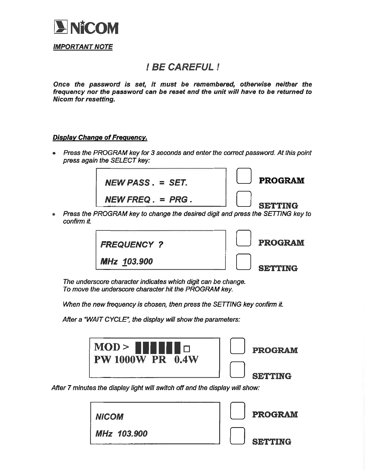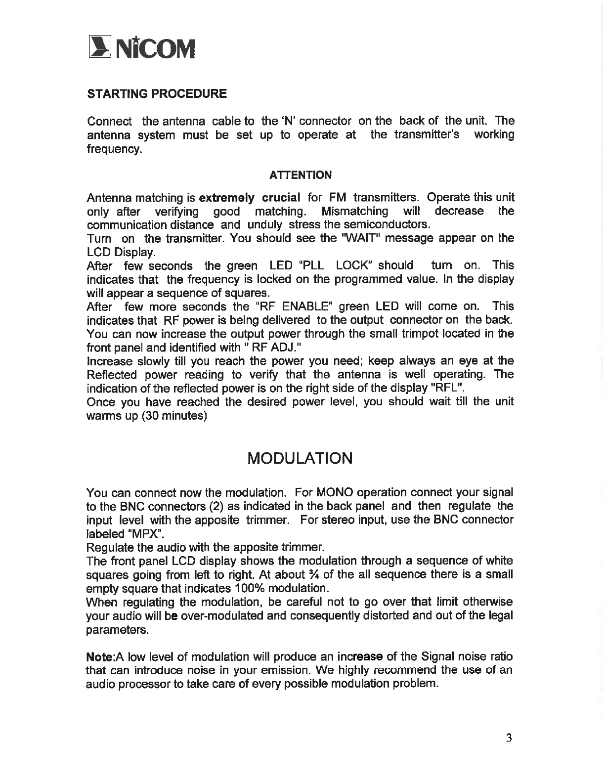 NiCOM USA FM TRANSMITTER USERS MANUAL