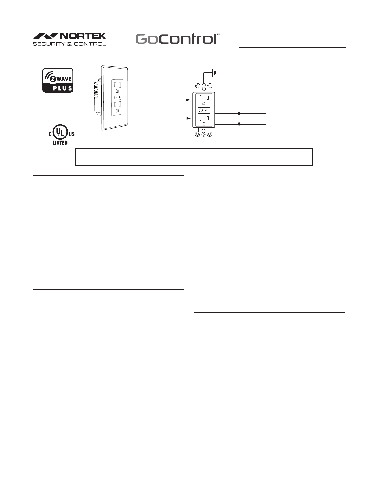 Nortek Security & Control LLC 500 Series Z-Wave Outlet 10010070BX1 WO15EMZ5 1 Instructions indd
