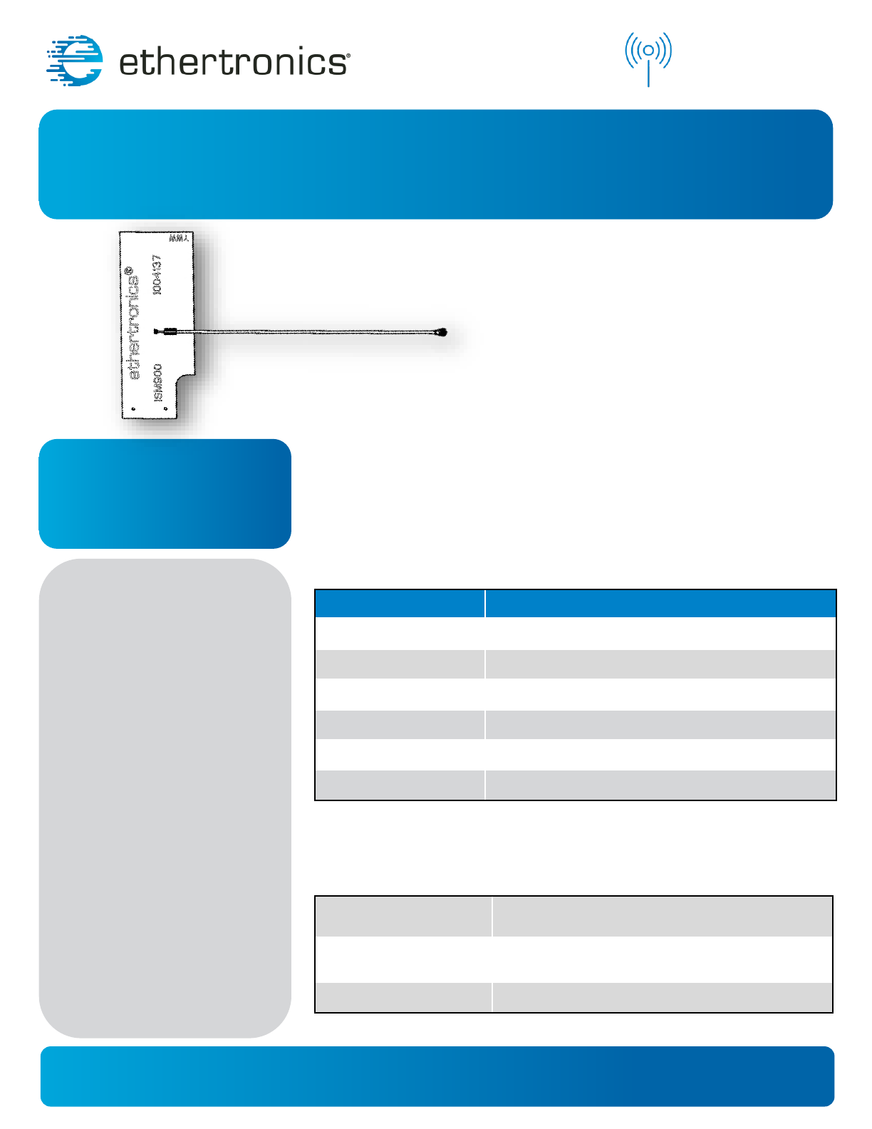 ISM Band Ethertronics’ Embedded Antenna Specifications.
