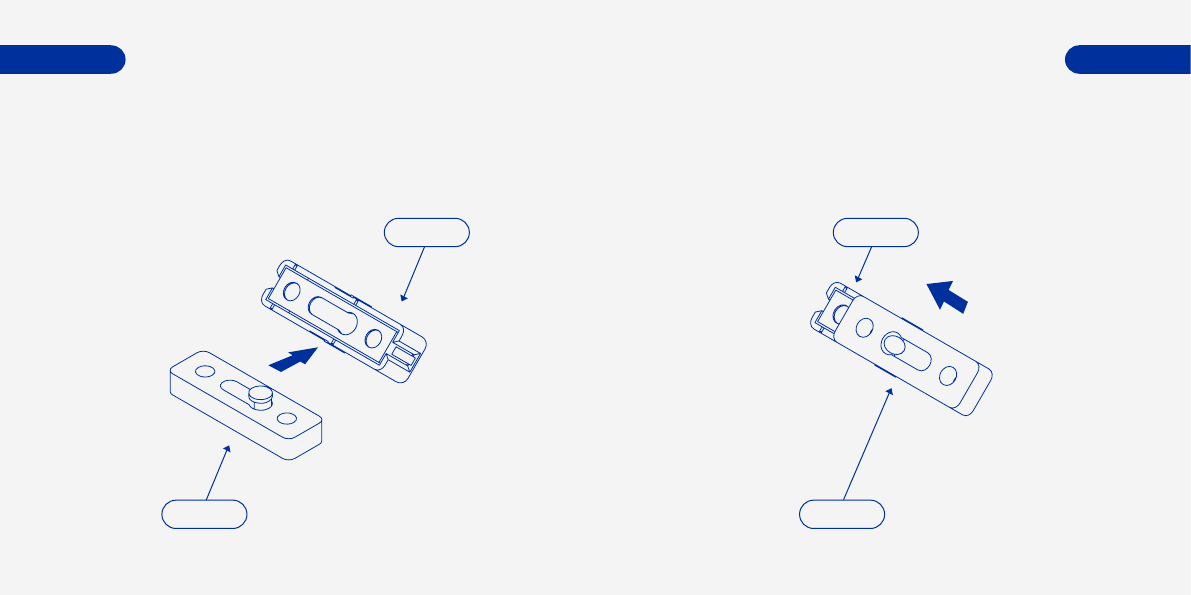 1. 2.Insert spacer pin into magnet base slot. Slide spacer forward to lock it onto the magnet.