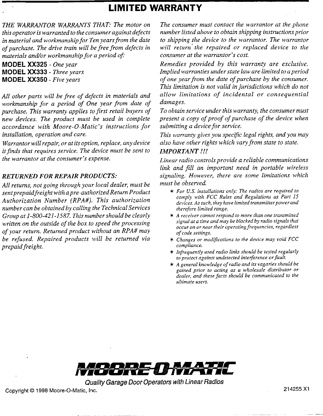 Nice North America AAE00407 Garage Door Opener Receiver User Manual 47821