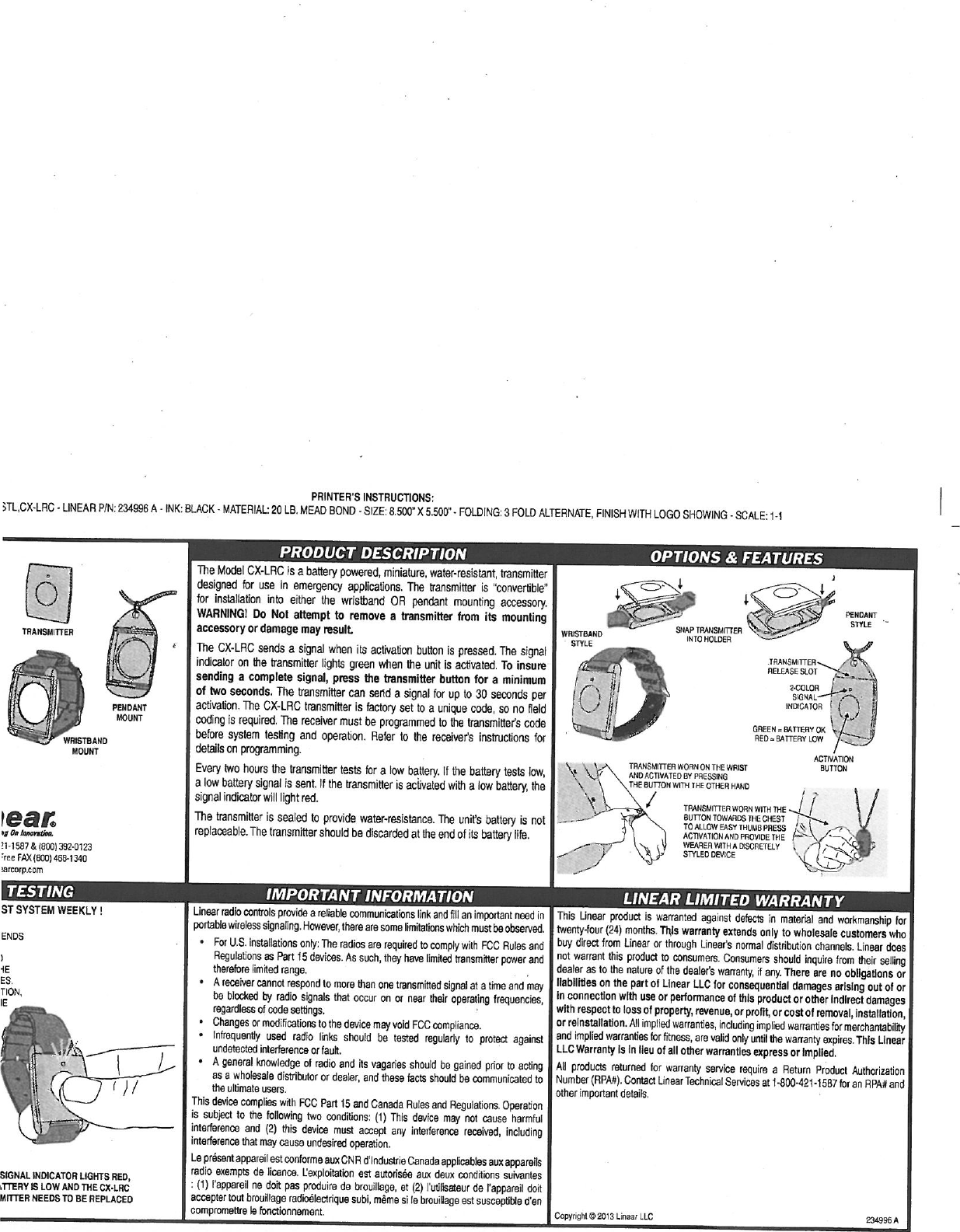 Nortek Security & Control LLC Security/Remote Control Transmitter Users Manual