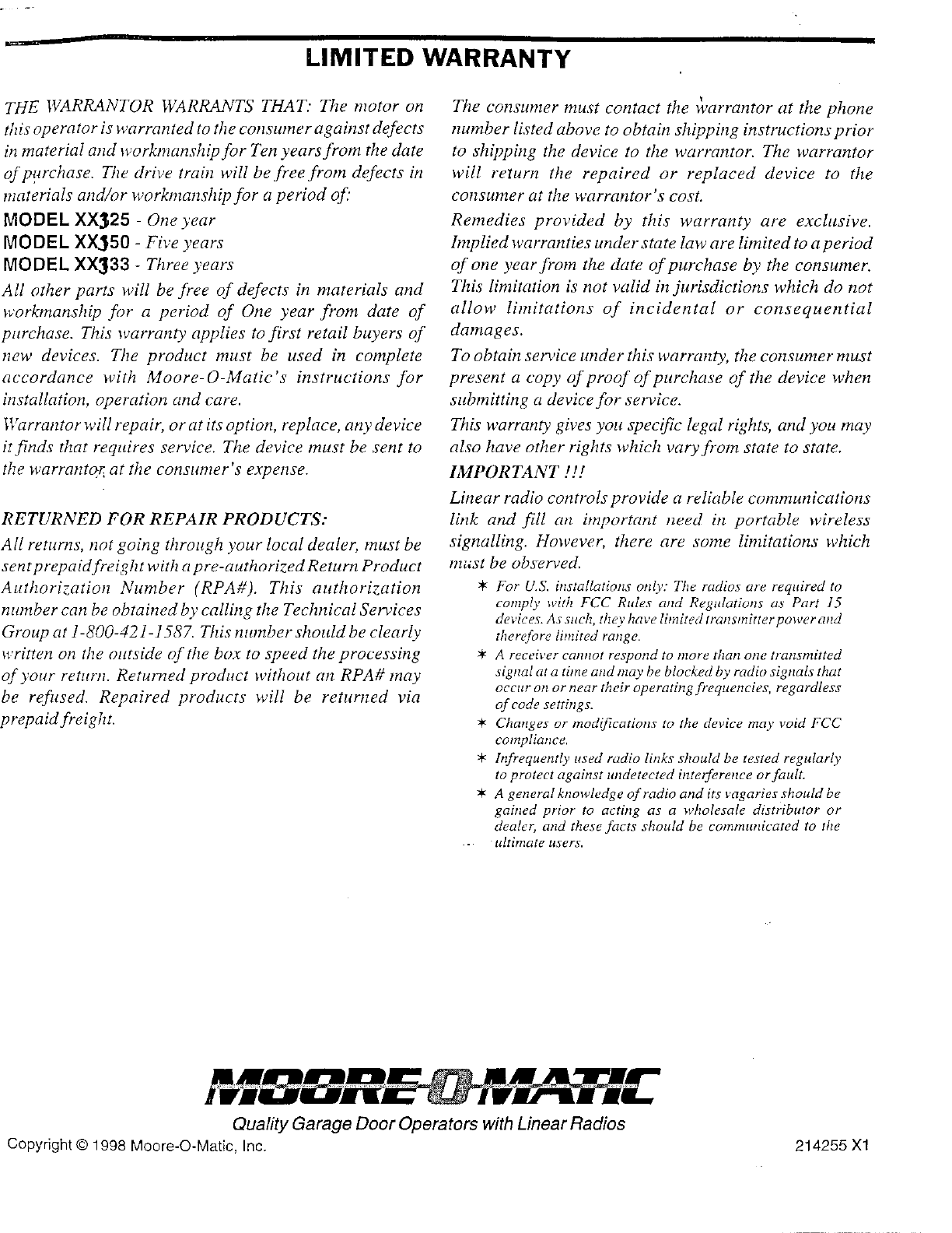 Nortek Security & Control LLC Door Opener Transmitter 56622