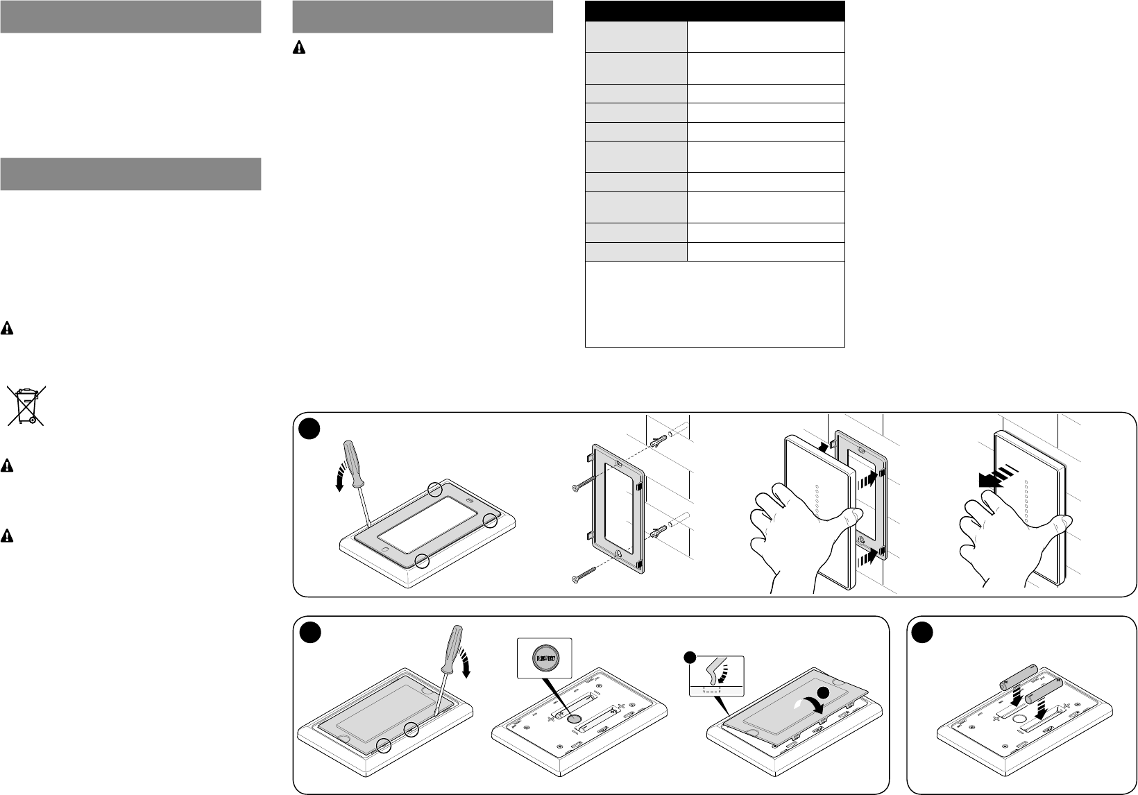 Instructions and warnings for installation and use