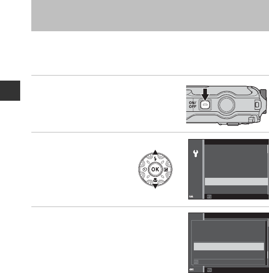 •When turning on and setting the camera for the first time