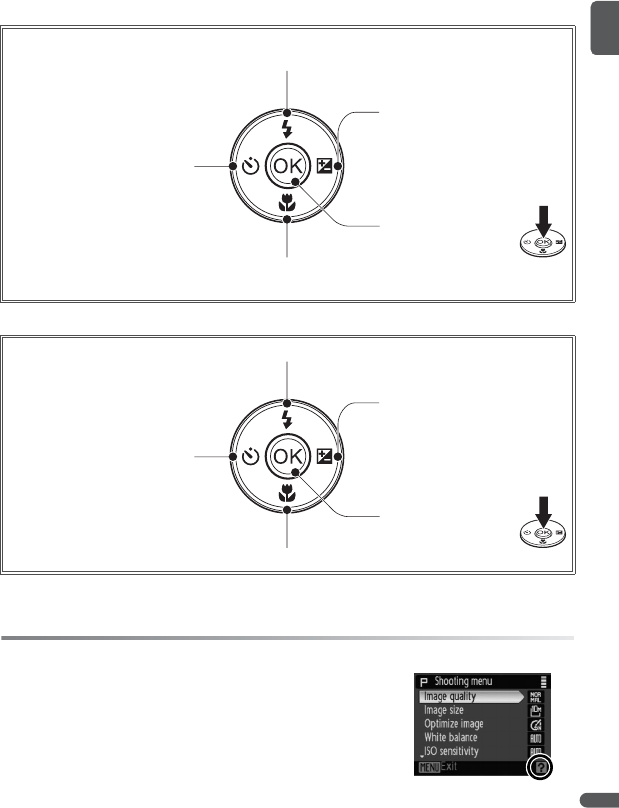Use the camera’s on-board help feature for help on menu items and other topics. See