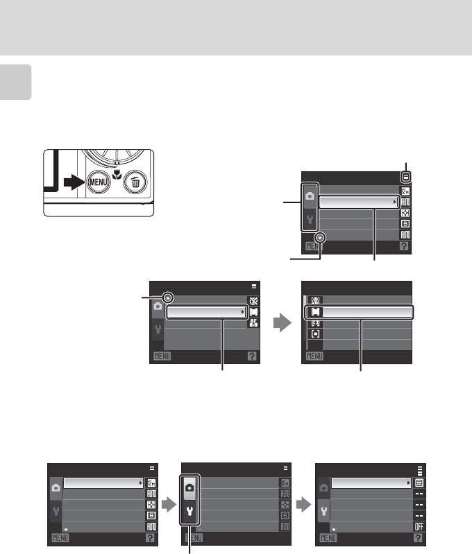 - Shooting, Playback and Setup Menus