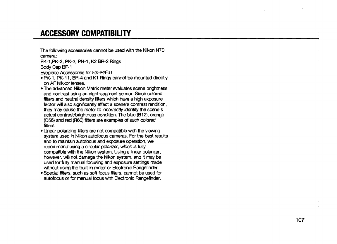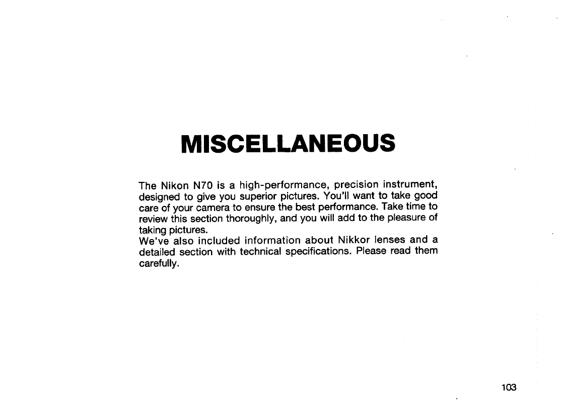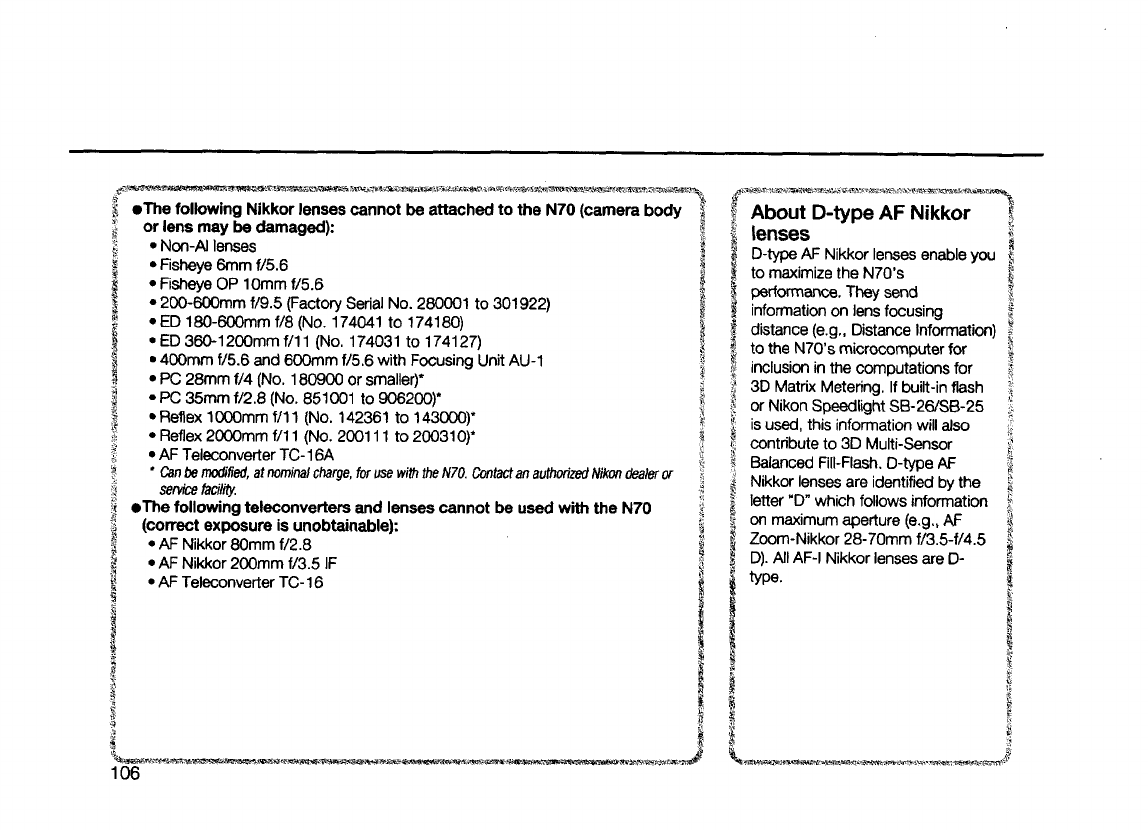 Nikon N70 Af Operating Instructions F70/N70 Instruction Manual