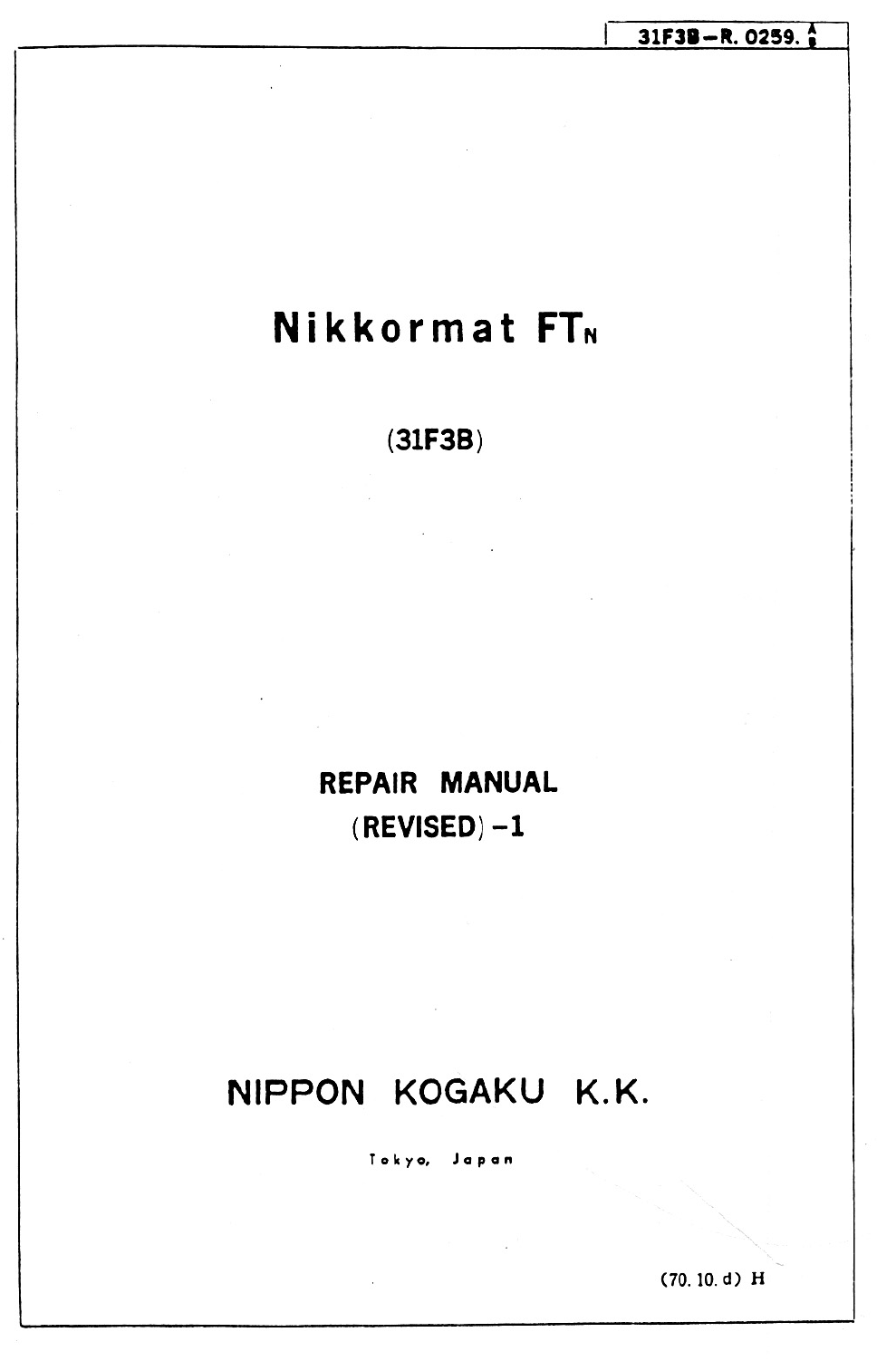 Nikon Nikkormat Ftn Repair Manual Cov