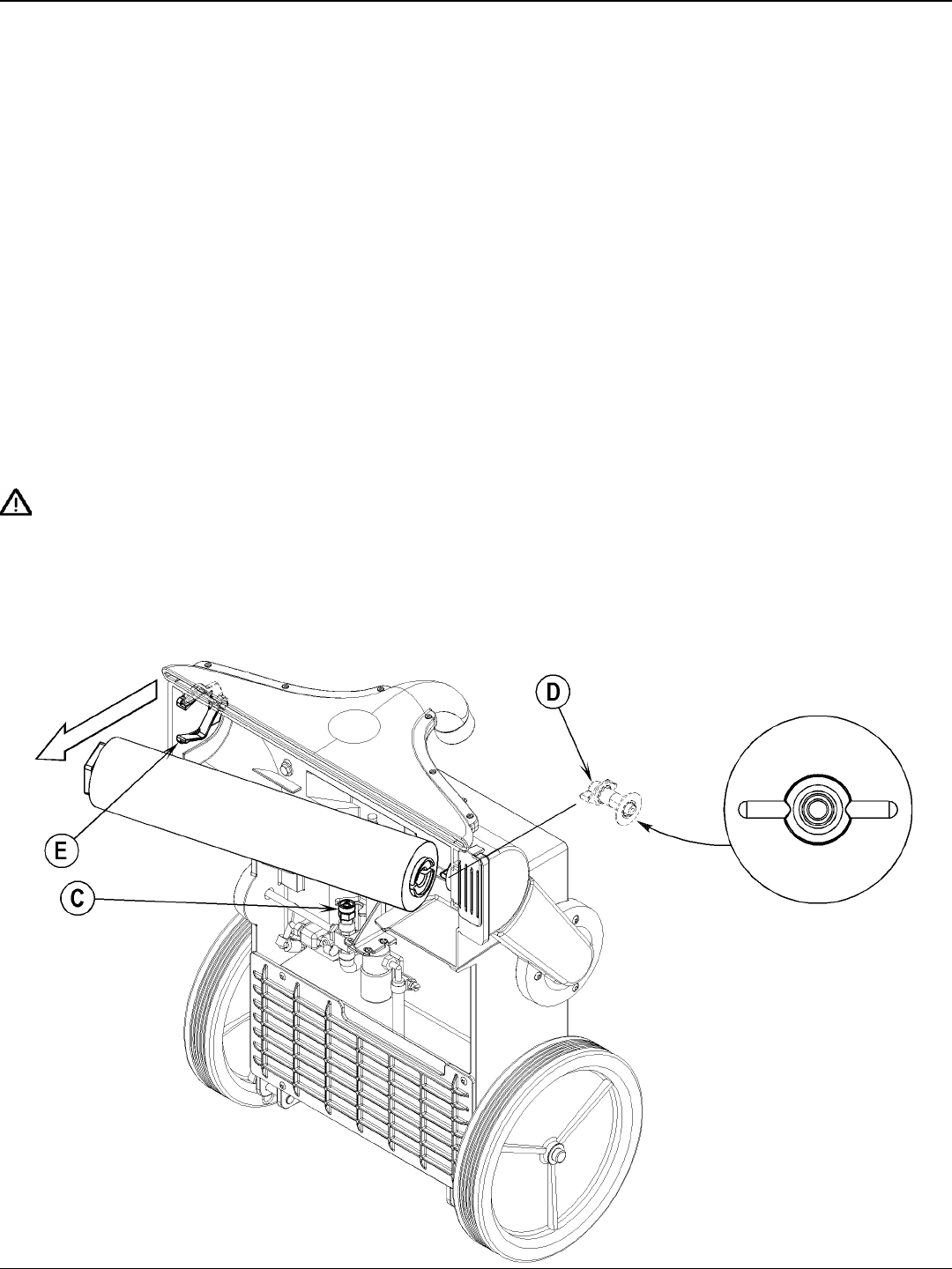 3 See Figure 7. Rotate the brush until the Drive Lug (D) is in a position where the fi ns on the drive lug are parallel to the fl oor.