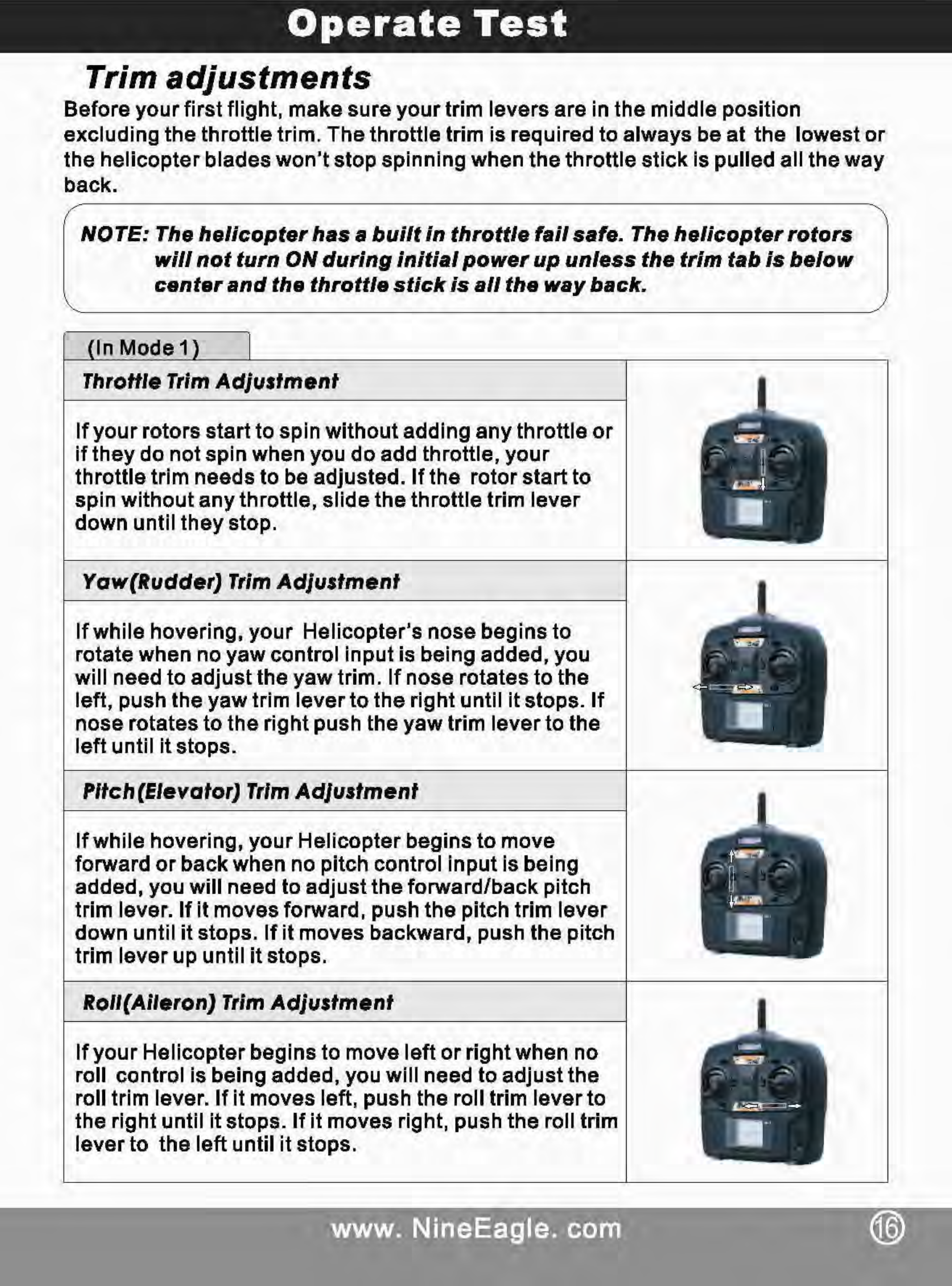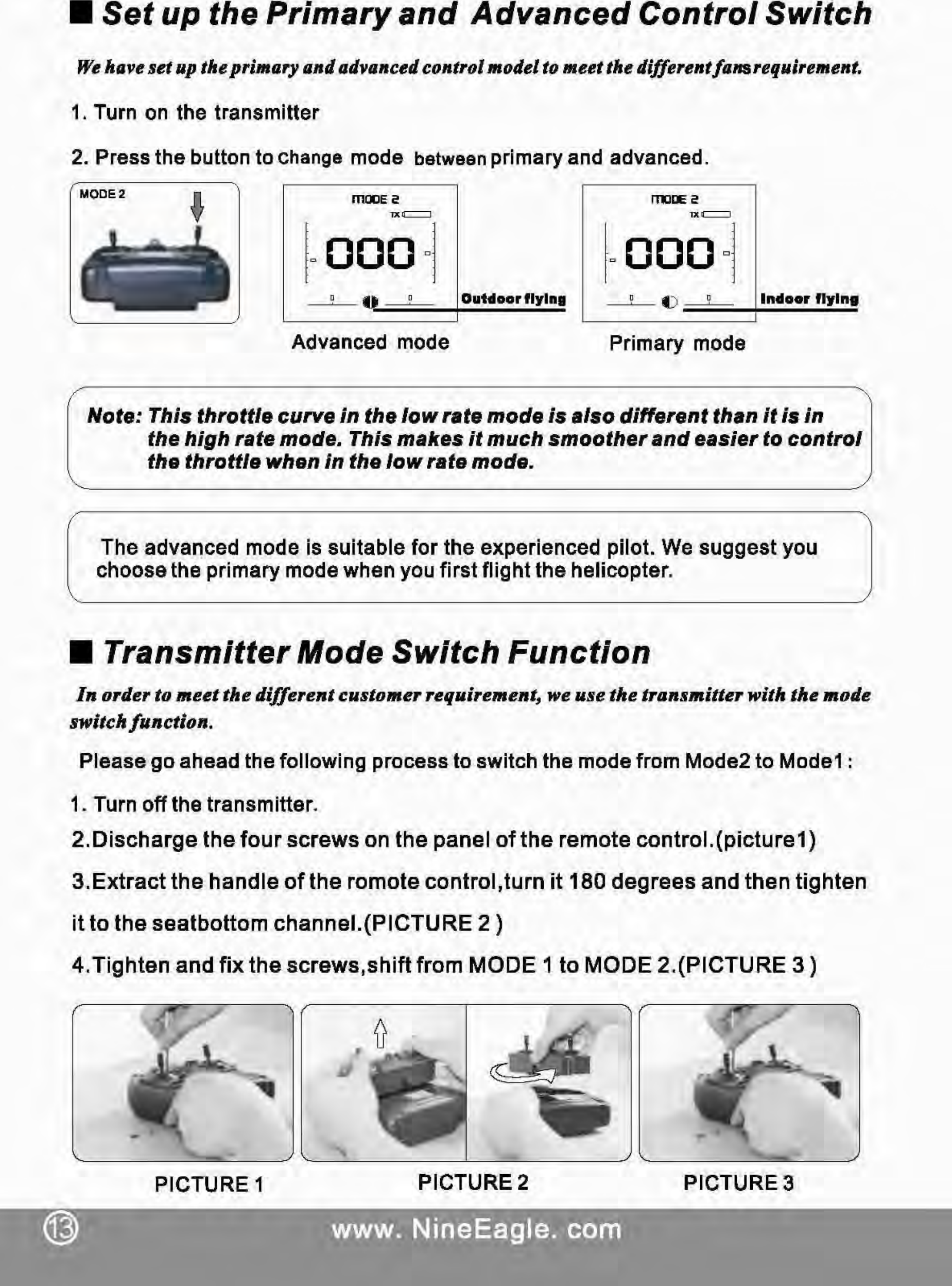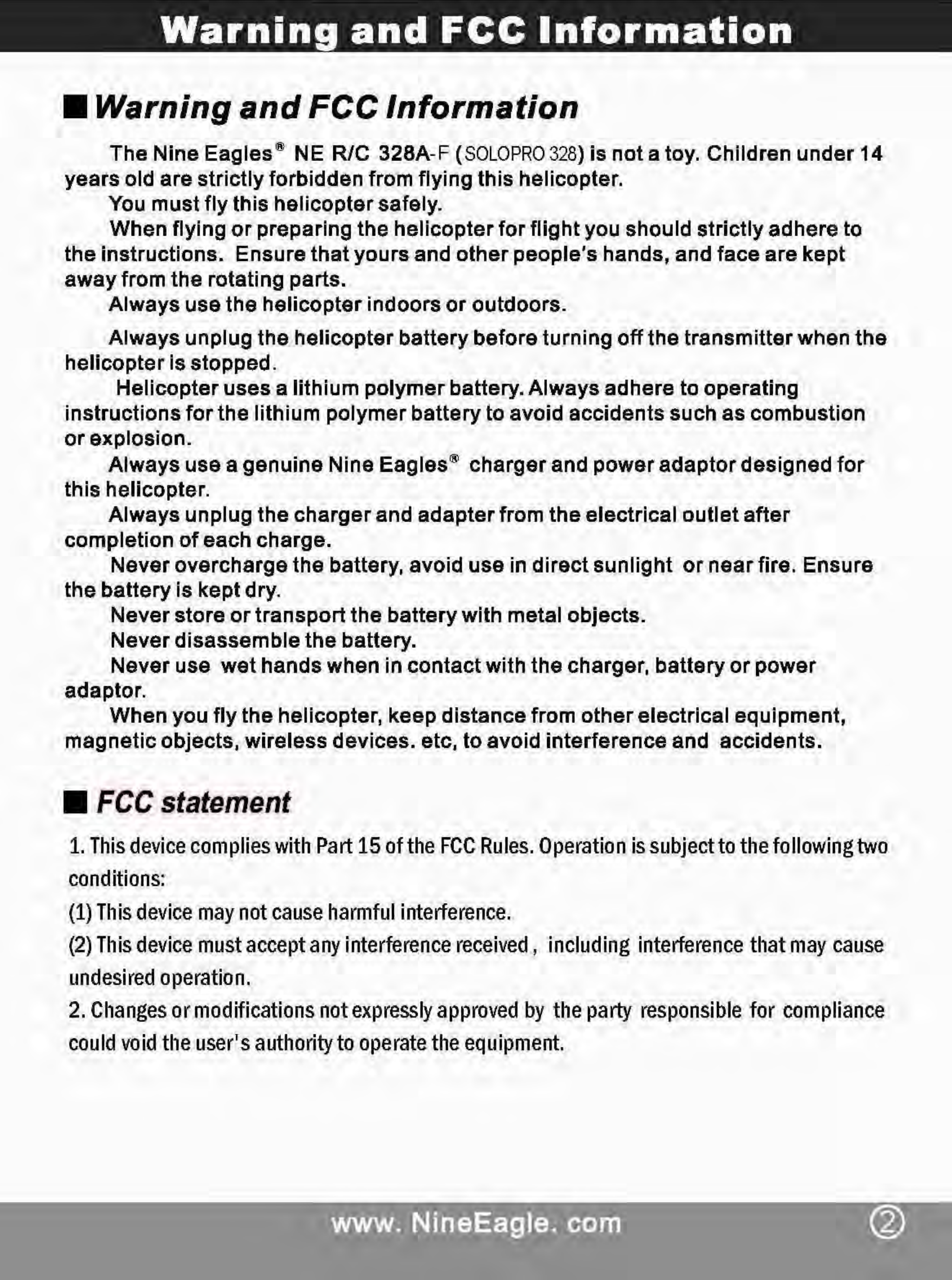 Nine Eagles Electronic Technology SRFU123899 Radio Control User Manual