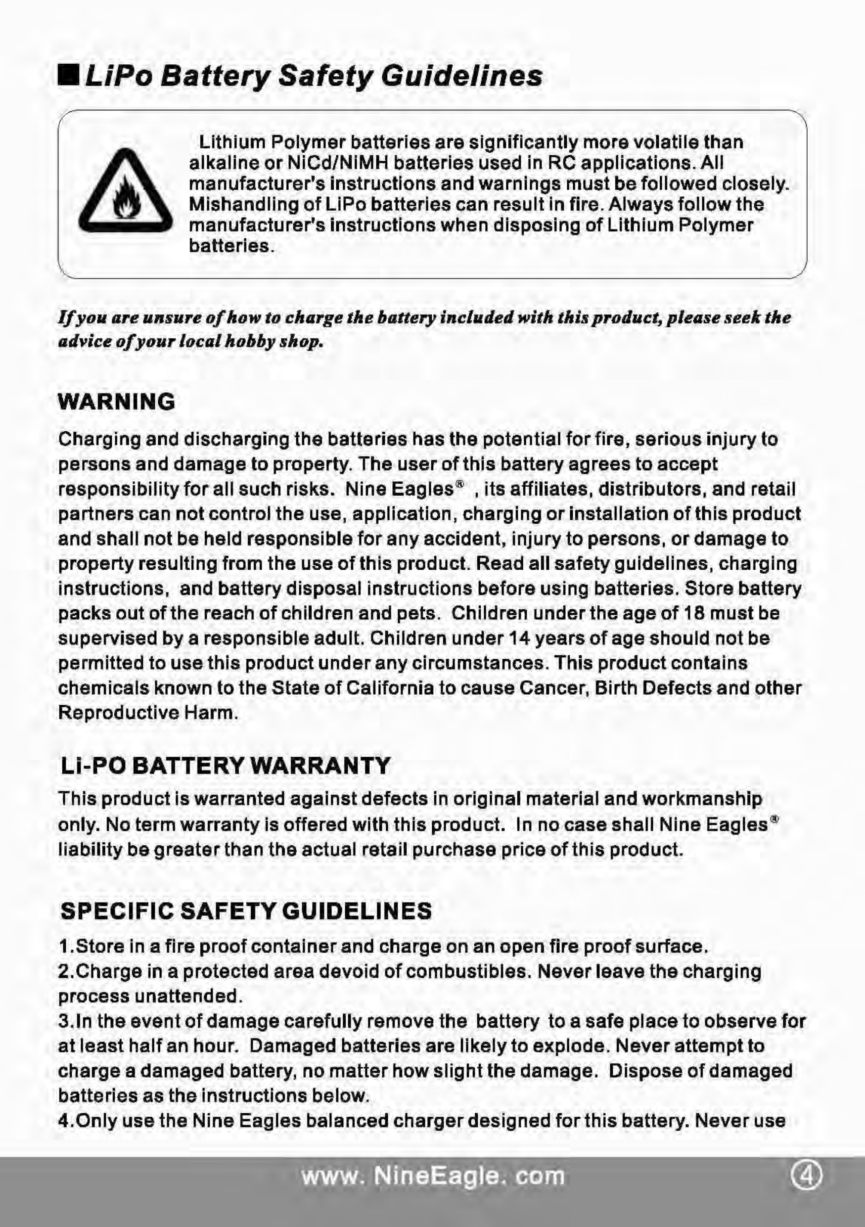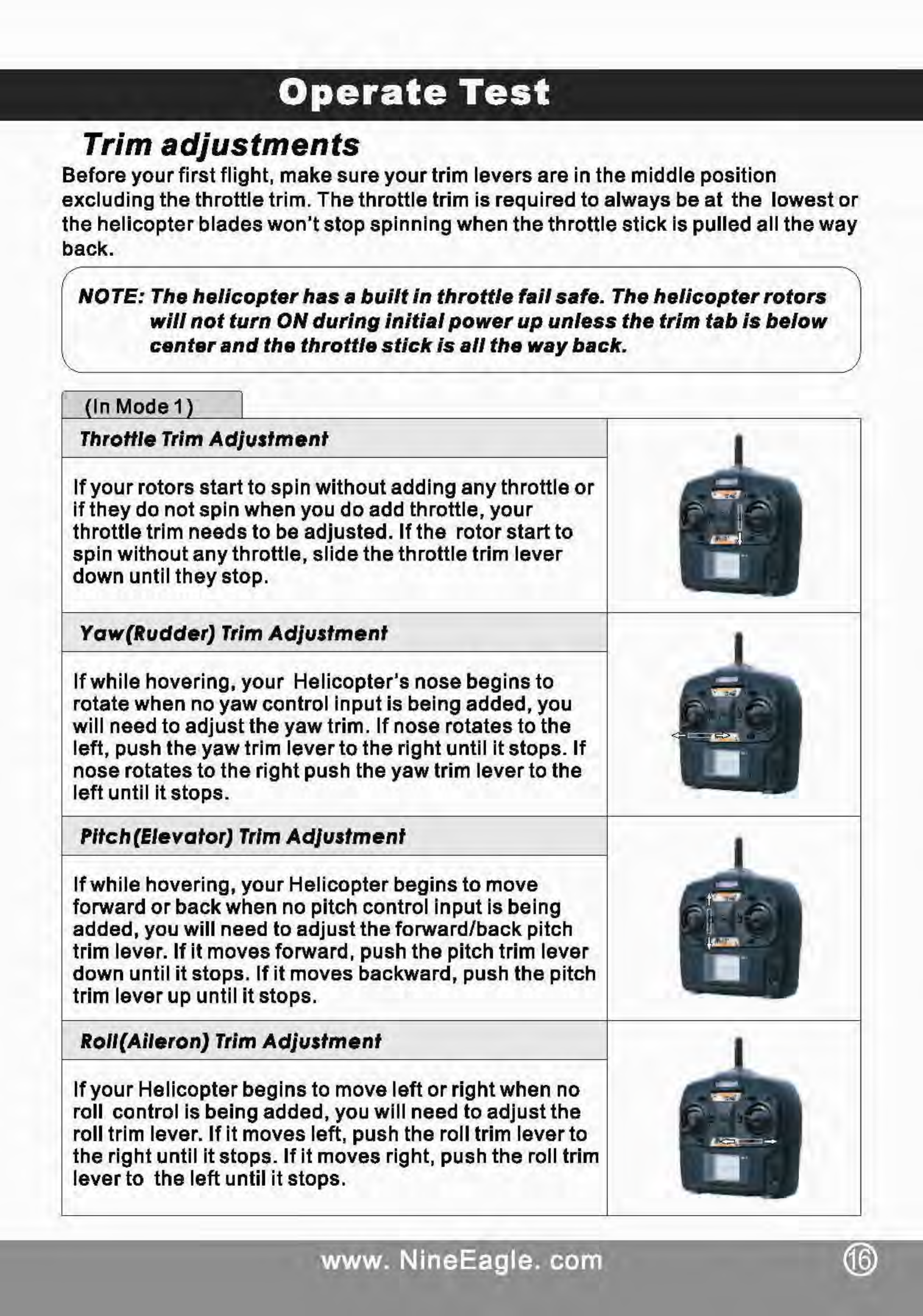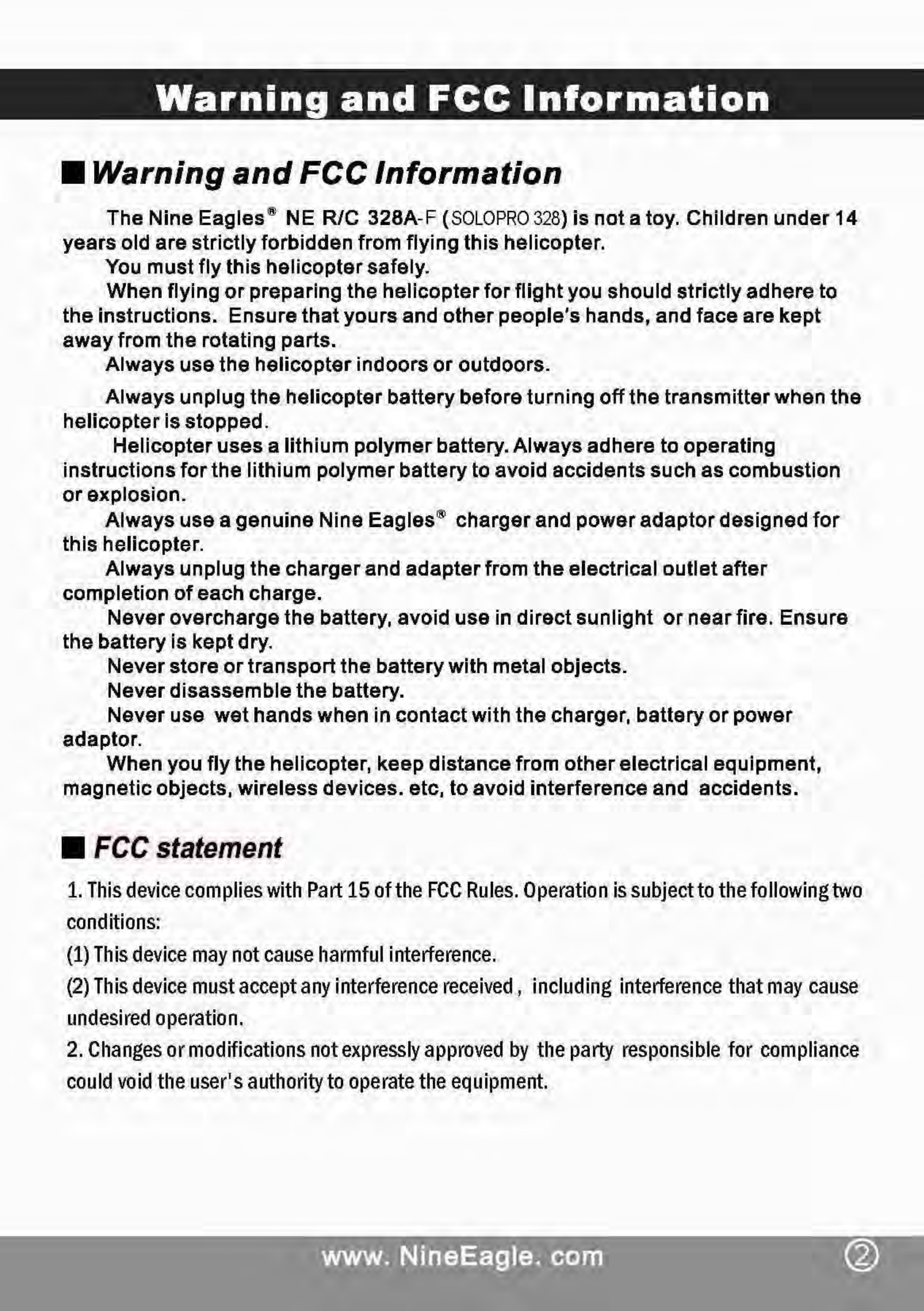 Nine Eagles Electronic Technology SRFU123899 Radio Control User Manual