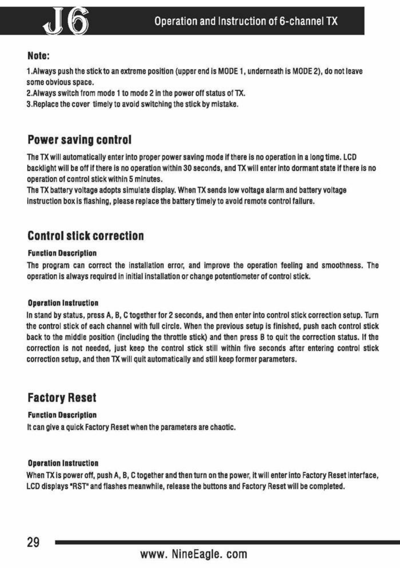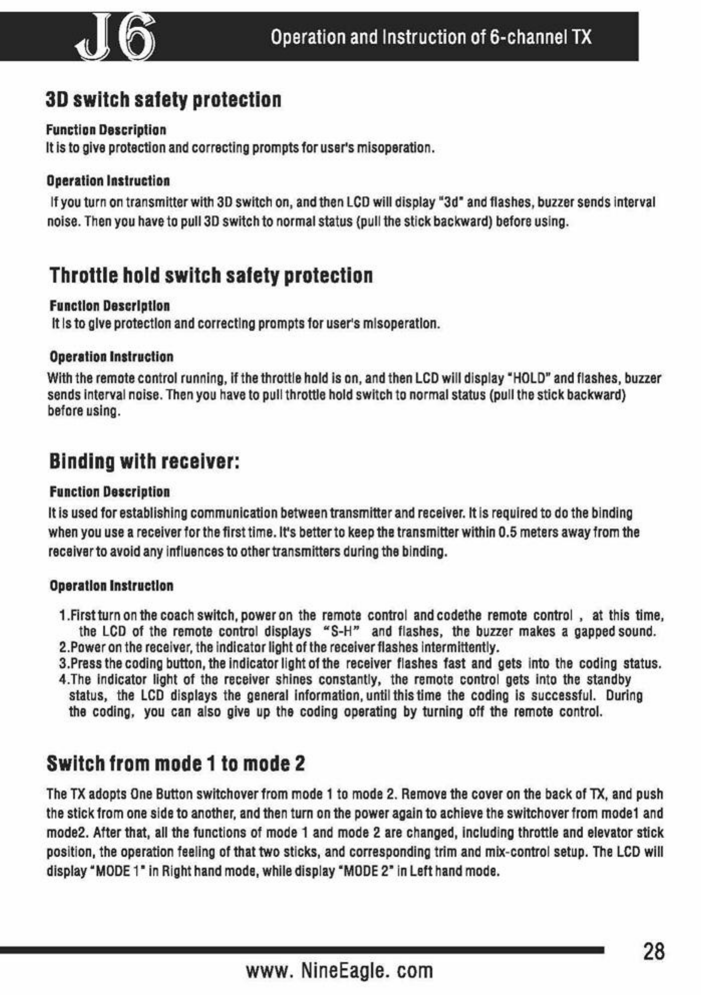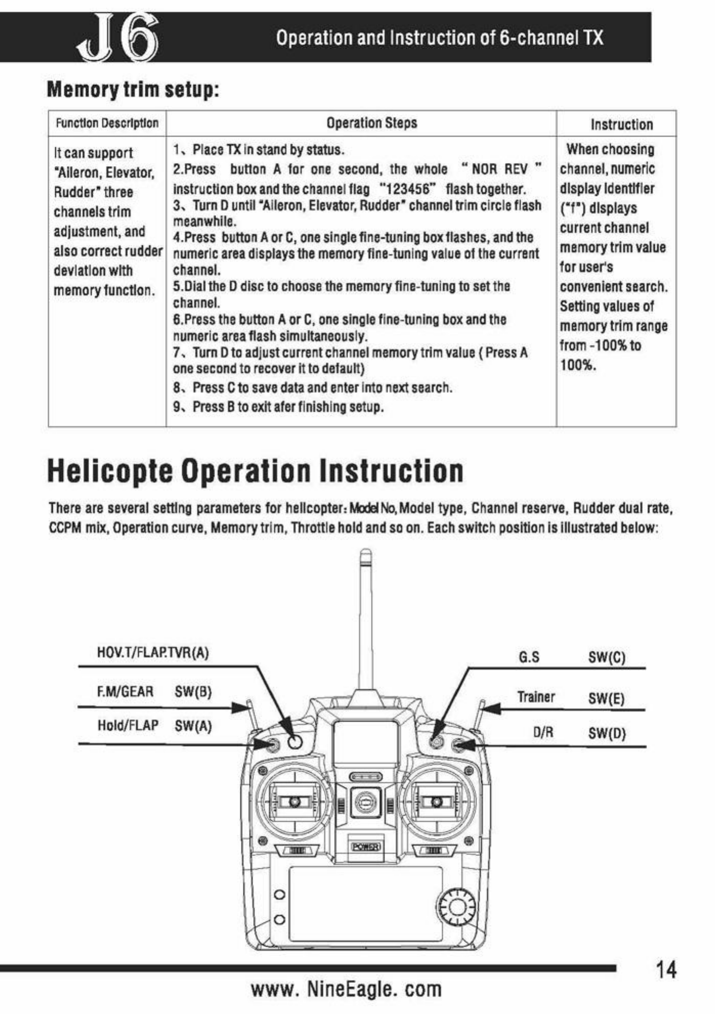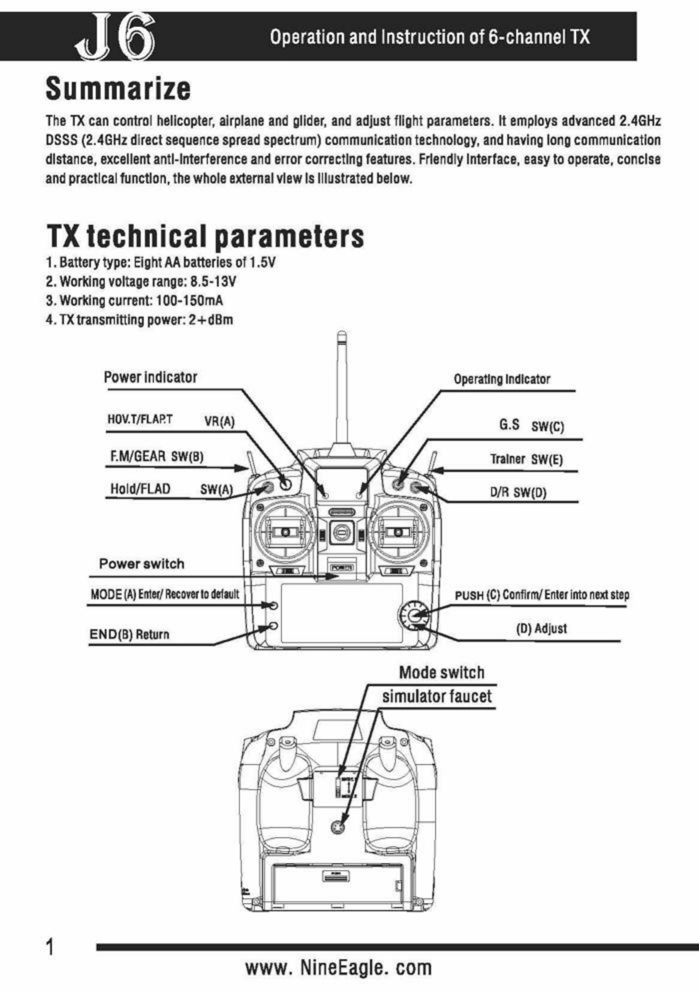 Nine Eagles Electronic Technology SRSLT18866 Radio Control User Manual