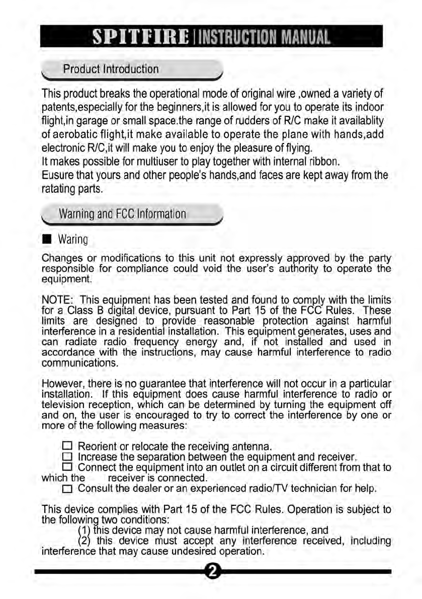 Nine Eagles Electronic Technology TOY2012 Radio control flight system User Manual