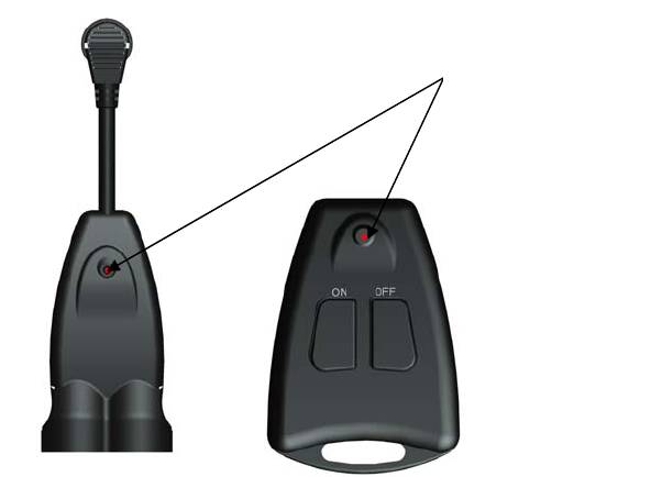 2. Press the corresponding “ON”, “OFF” buttons on the transmitter to switch on and off the connected appliance by