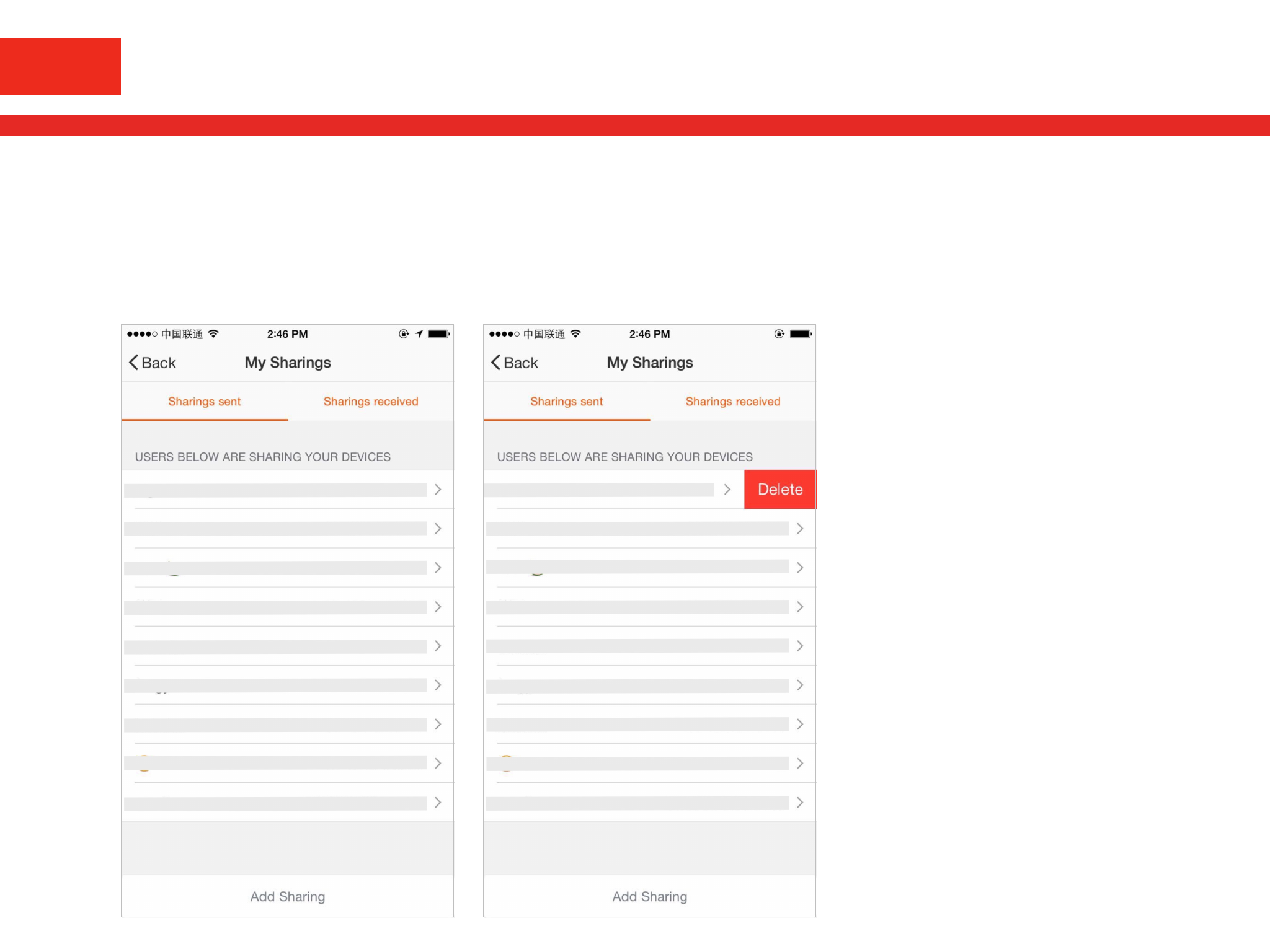Receive sharing: The list shows all devices that your account has received.