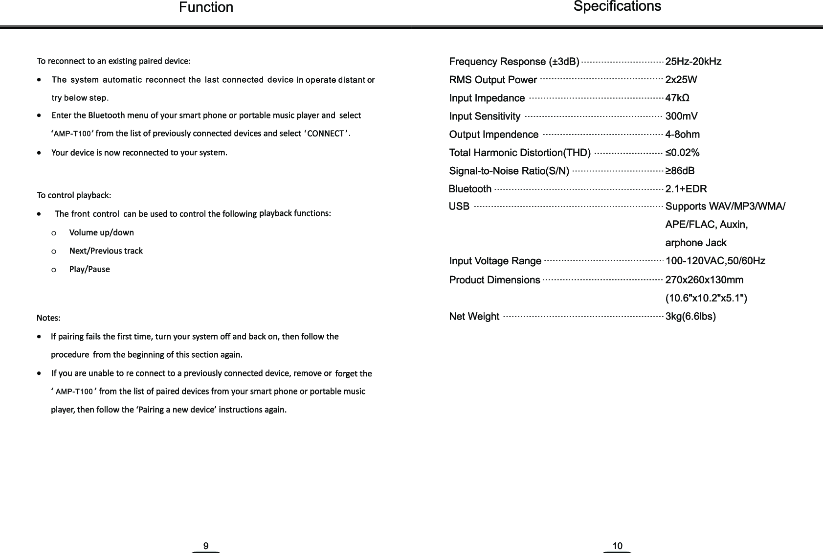 Ningbo Lumiaudio Electronic Technology AMP Tube Amplifier With Bluetooth Stereo User Manual AMP T100 manual 220 240VAC
