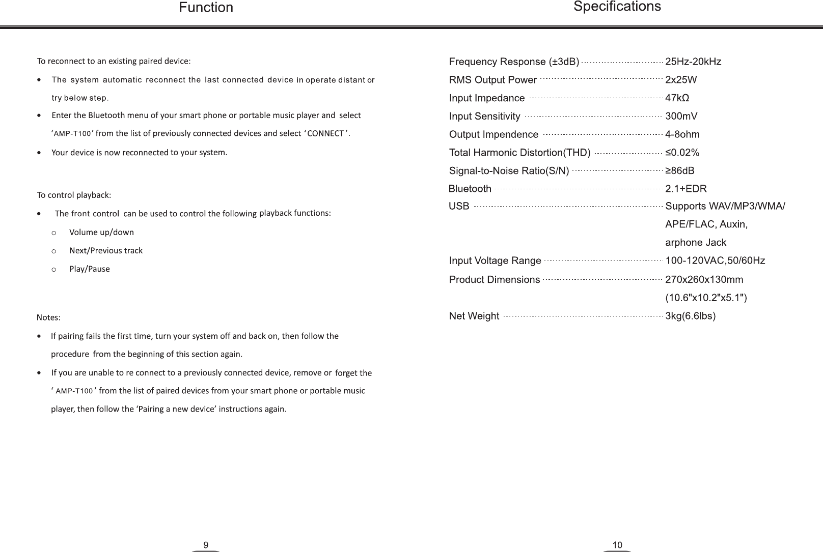 Ningbo Lumiaudio Electronic Technology AMP Tube Amplifier With Bluetooth Stereo User Manual AMP T100 manual 220 240VAC