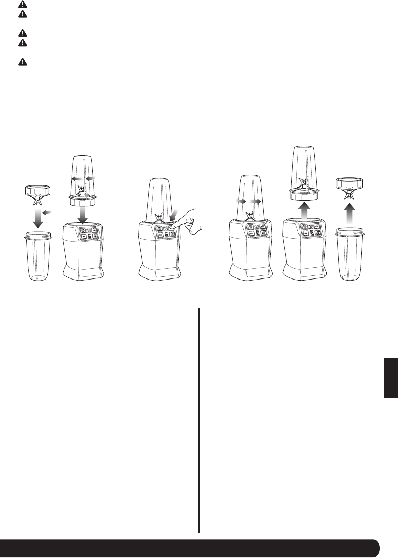 la tapa/cuchillas queden bien apoyadas sobre la taza. Gire en sentido