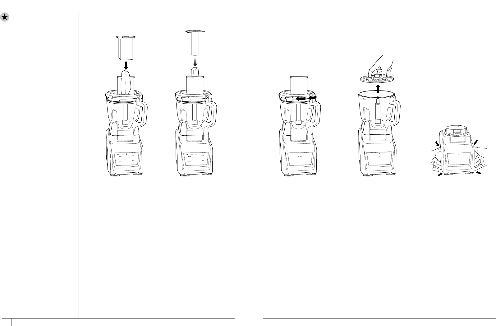 • Set the cup on a level surface. Carefully place the lid or Pro Extractor Blades Assembly on the top of the
